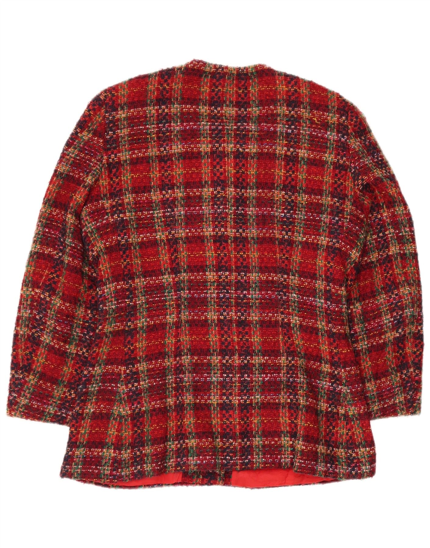 VINTAGE Womens 6 Button Blazer Jacket UK 12 Medium Red Check Wool