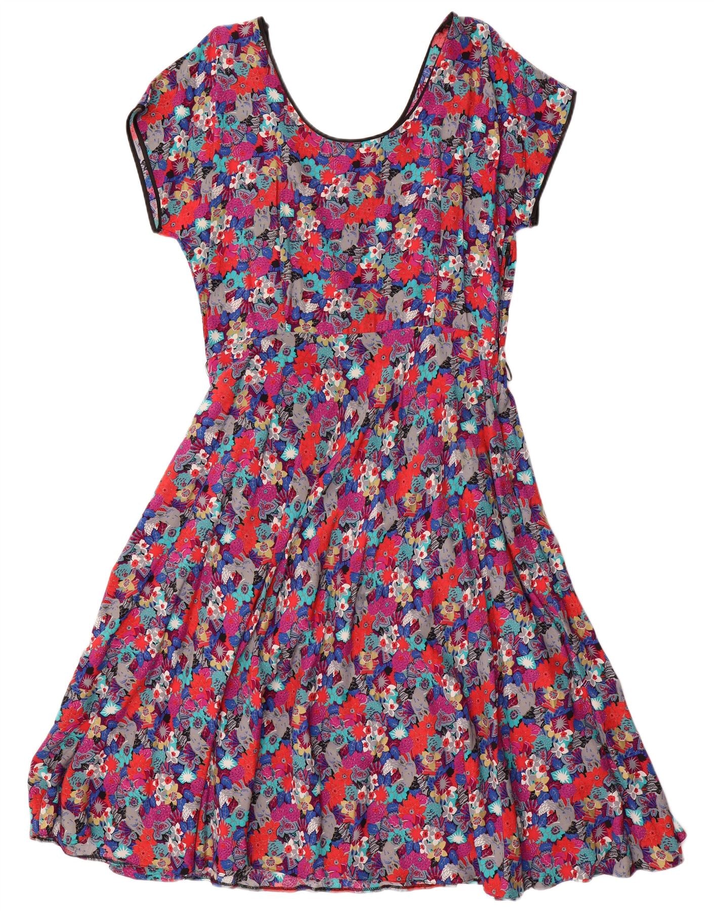 VINTAGE Womens A-Line Dress EU 44 XL Multicoloured Floral Viscose
