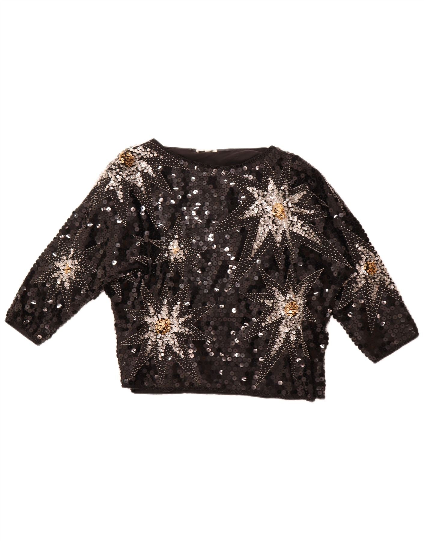 VINTAGE Womens Abstract Pattern 3/4 Sleeve Blouse Top EU 42 Large Black