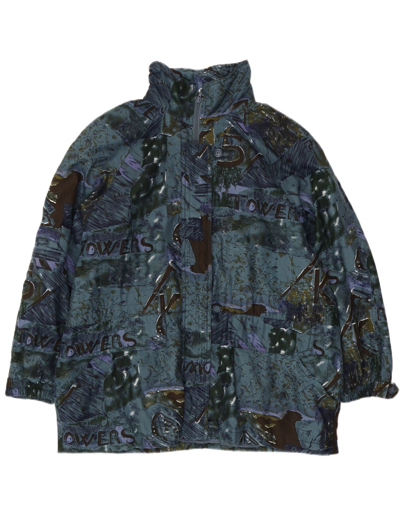 VINTAGE Womens Abstract Pattern Oversized Windbreaker Coat EU 44 XL Blue