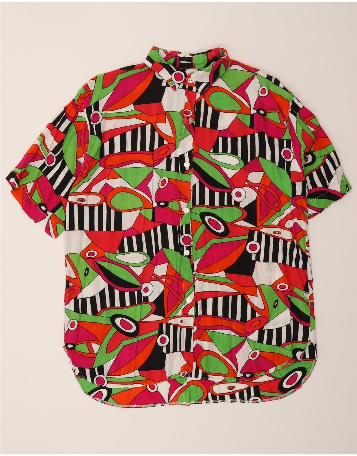 VINTAGE Womens Abstract Pattern Shirt Blouse UK 14 Medium Multicoloured