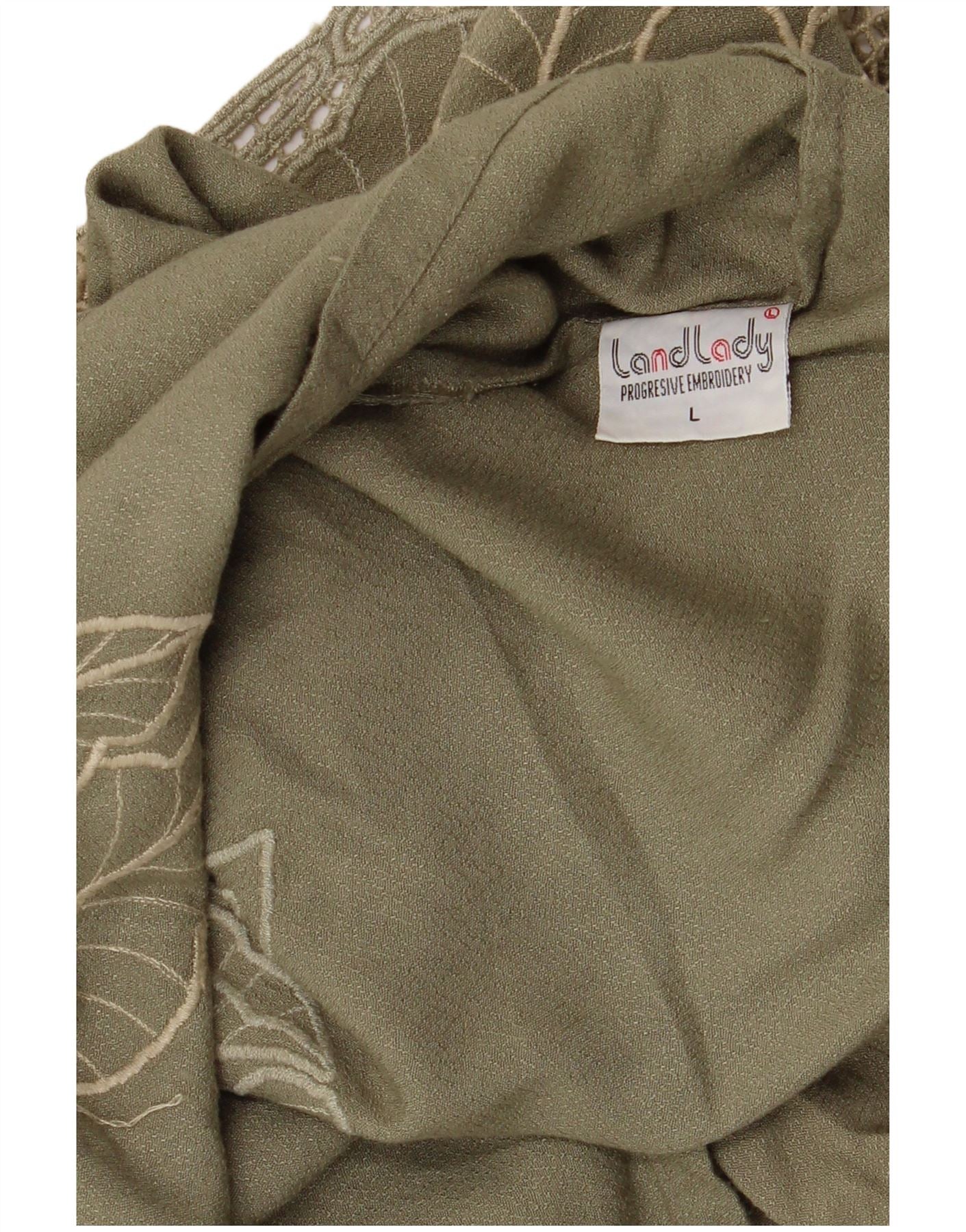 Vintage Womens Blouse Top UK 16 Large Khaki Floral Rayon