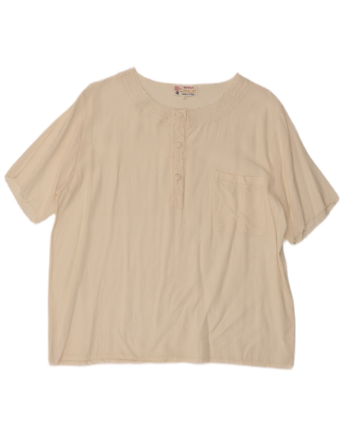 VINTAGE Womens Blouse Top UK 16 Large Off White Silk