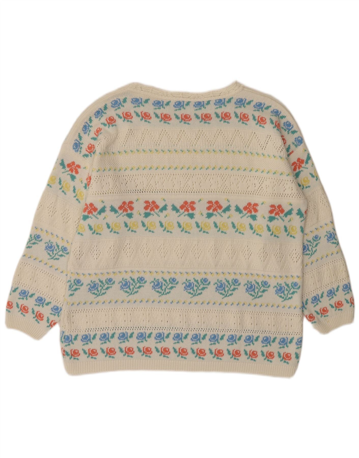 VINTAGE Womens Boat Neck Jumper Sweater IT 46 Large White Floral Acrylic
