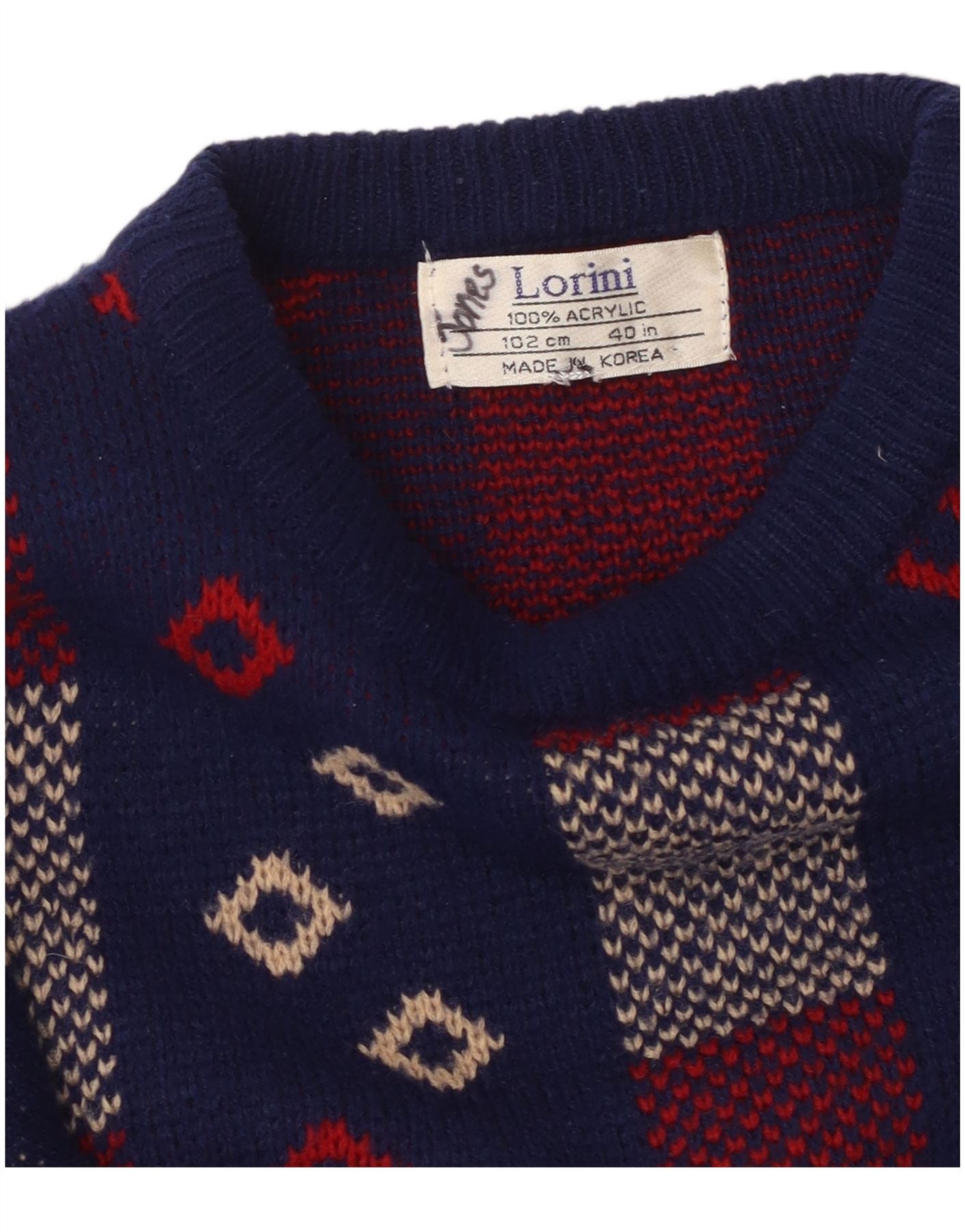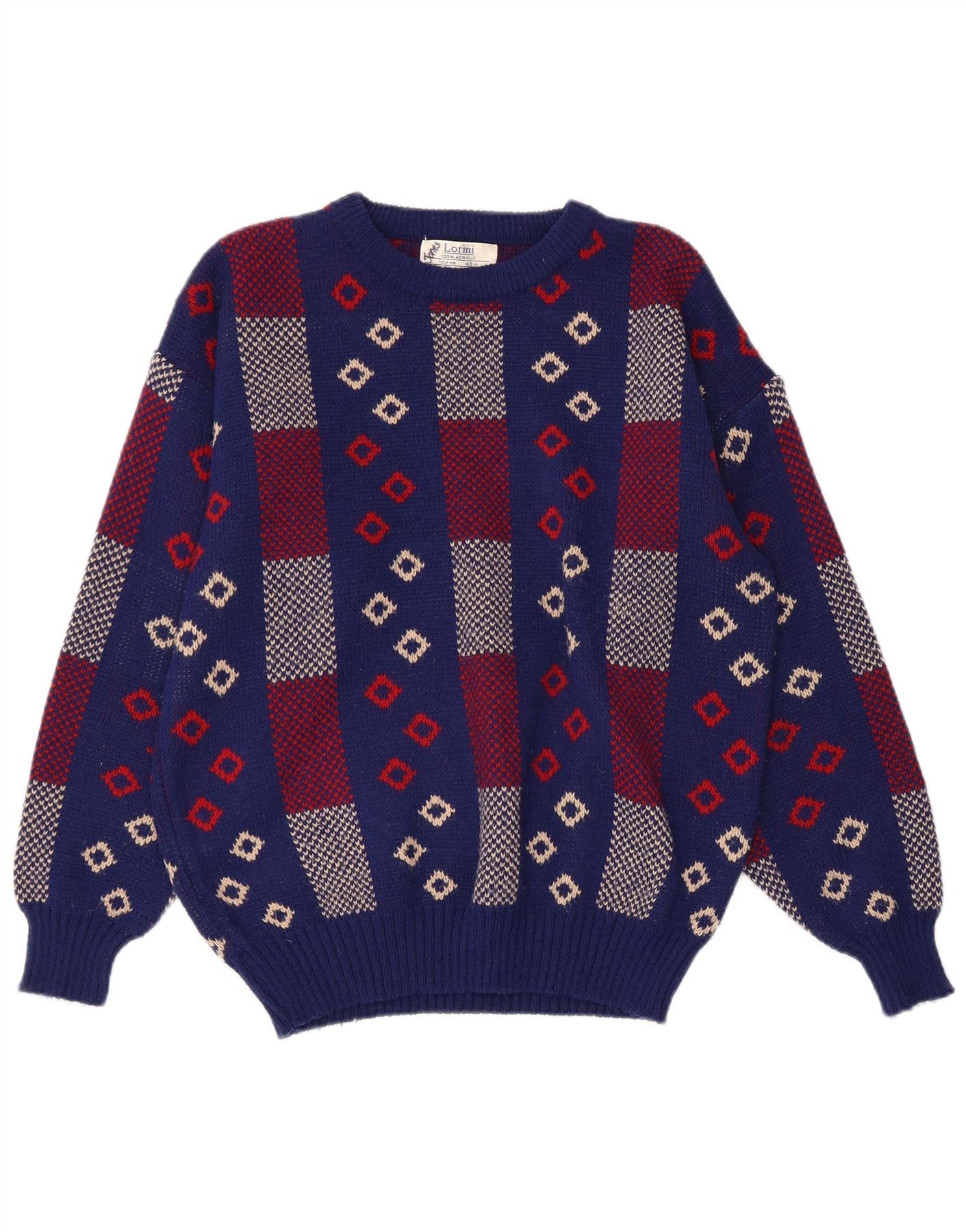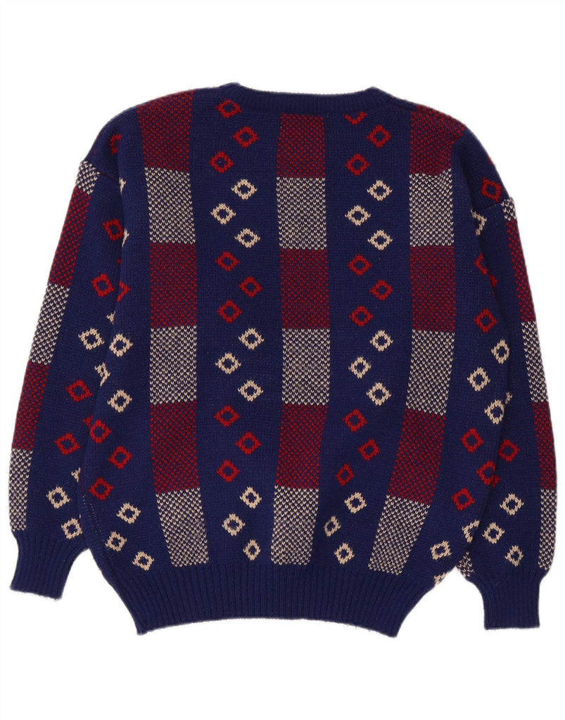 VINTAGE Womens Boat Neck Jumper Sweater UK 14 Medium Navy Blue Geometric