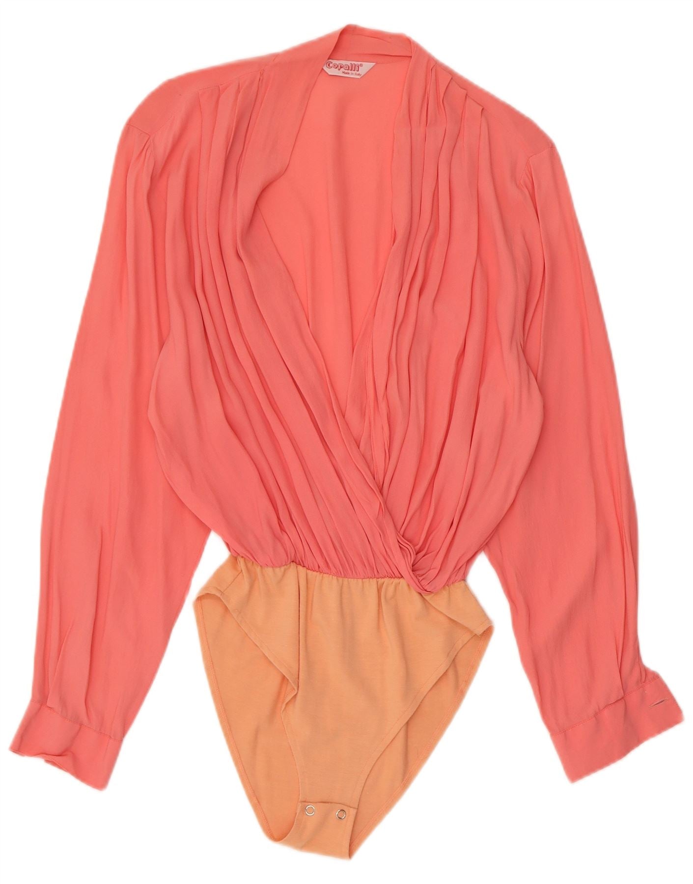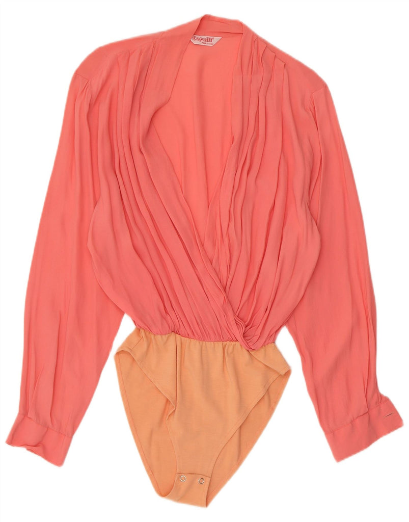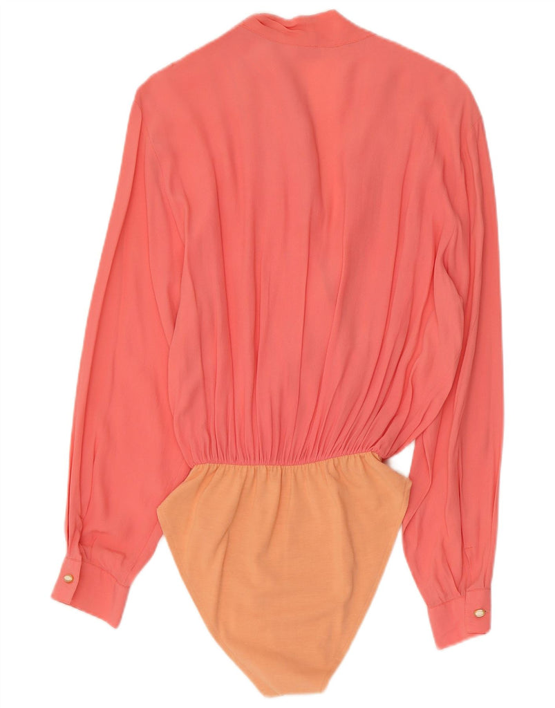 VINTAGE Womens Bodysuit UK 12 Medium Orange Colourblock Acetate