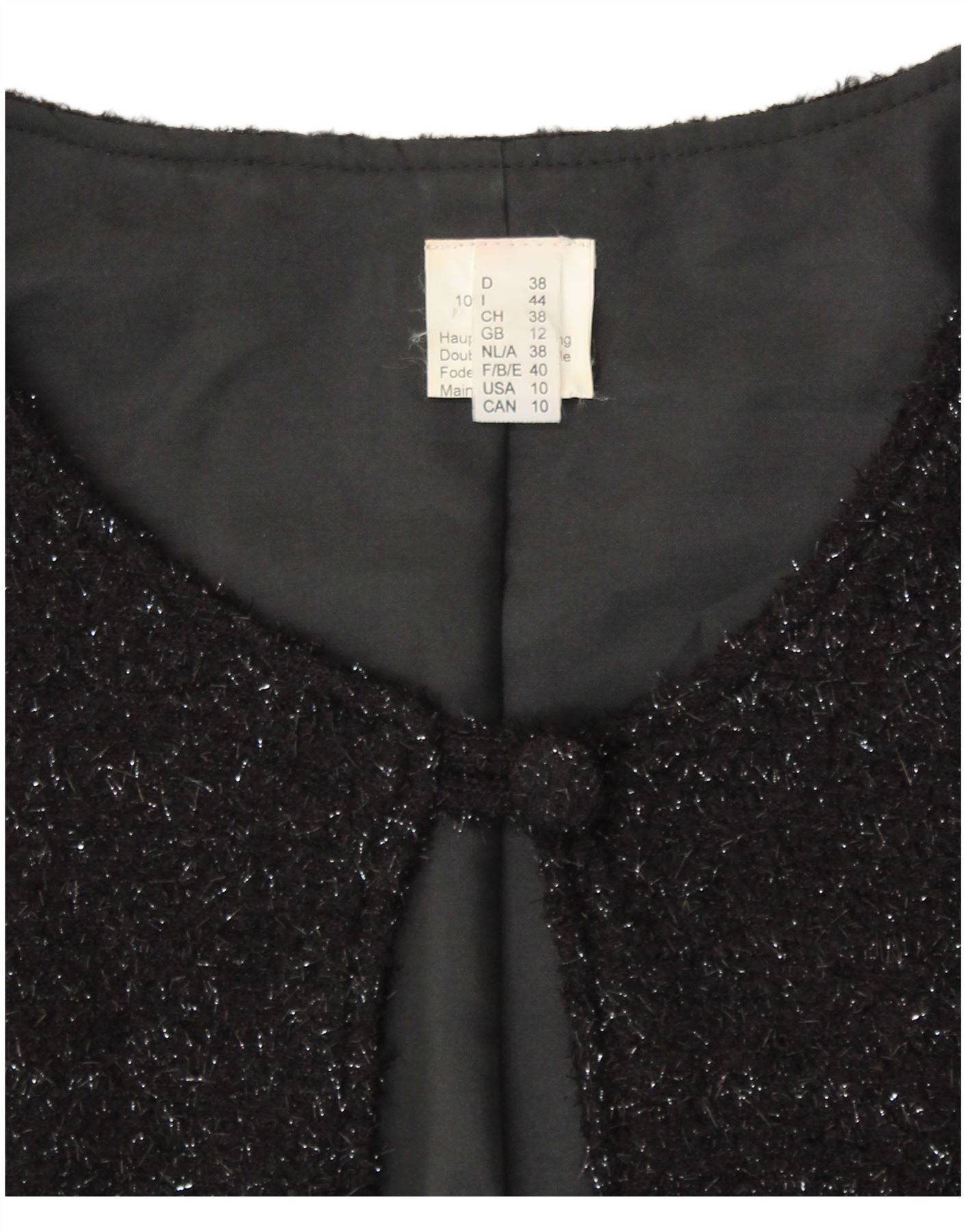 VINTAGE Womens Bolero Jacket UK 12 Medium Black Flecked Nylon