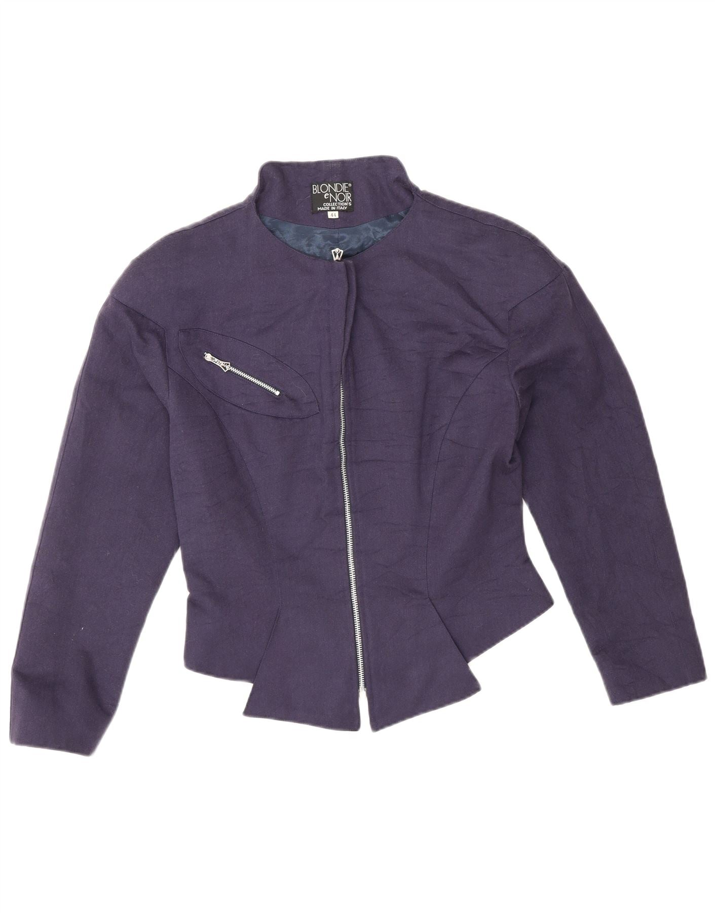 VINTAGE Womens Bomber Jacket IT 44 Medium Navy Blue Acetate