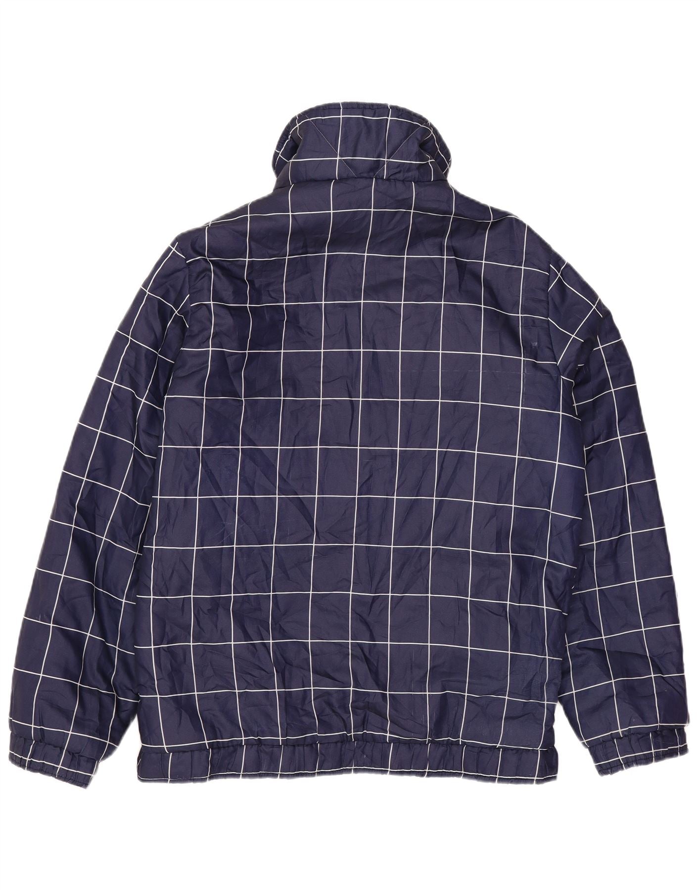 VINTAGE Womens Bomber Jacket UK 14 Large Navy Blue Check