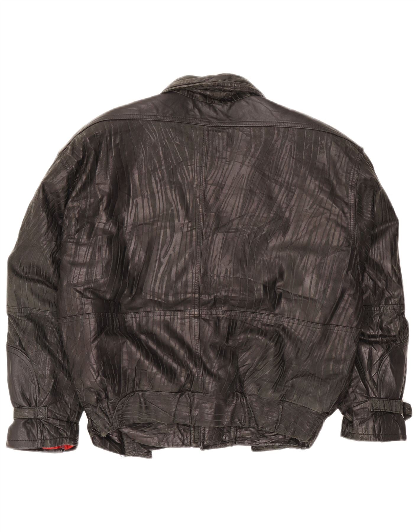 Vintage Womens Bomber Leather Jacket IT 54 3XL Black Striped