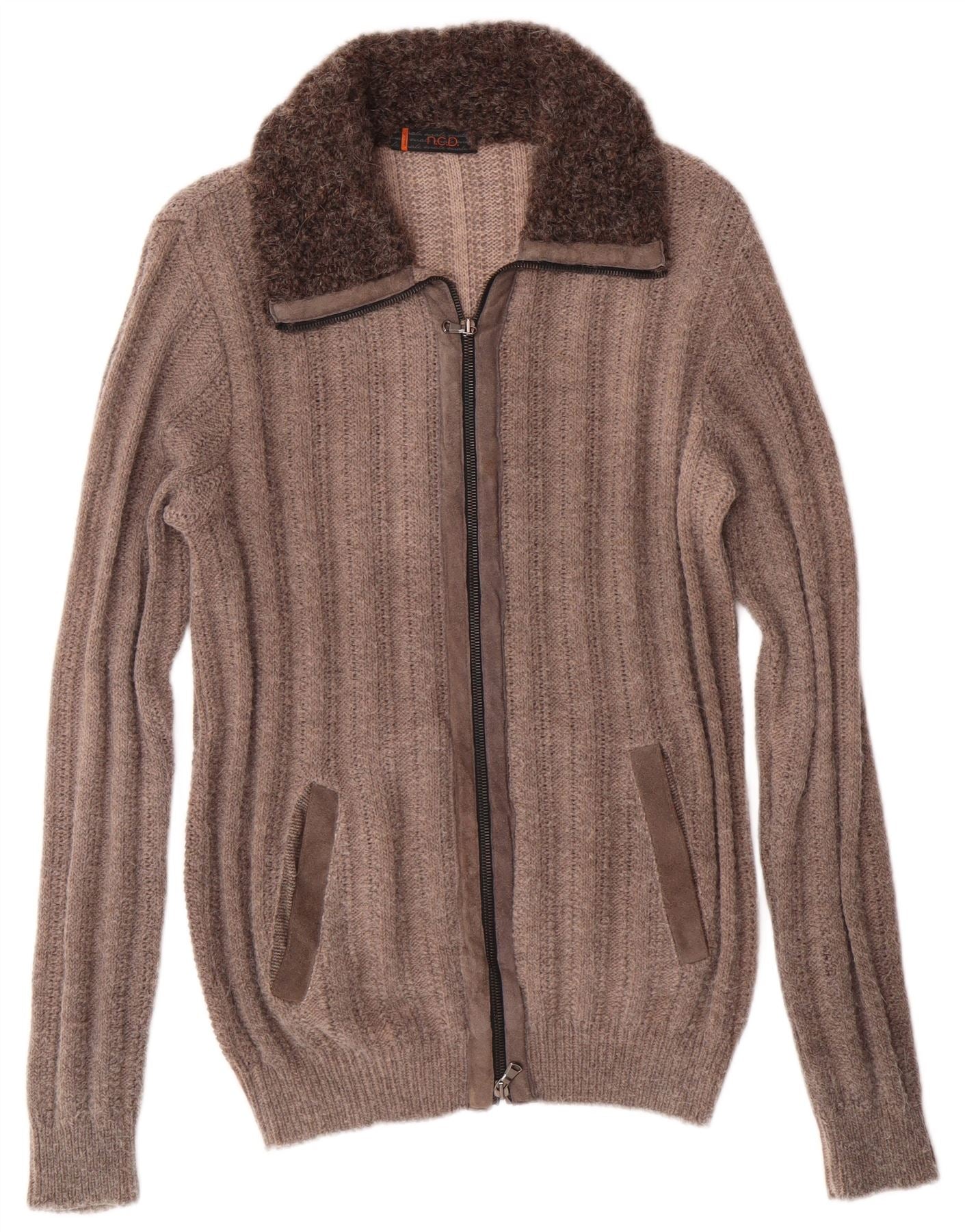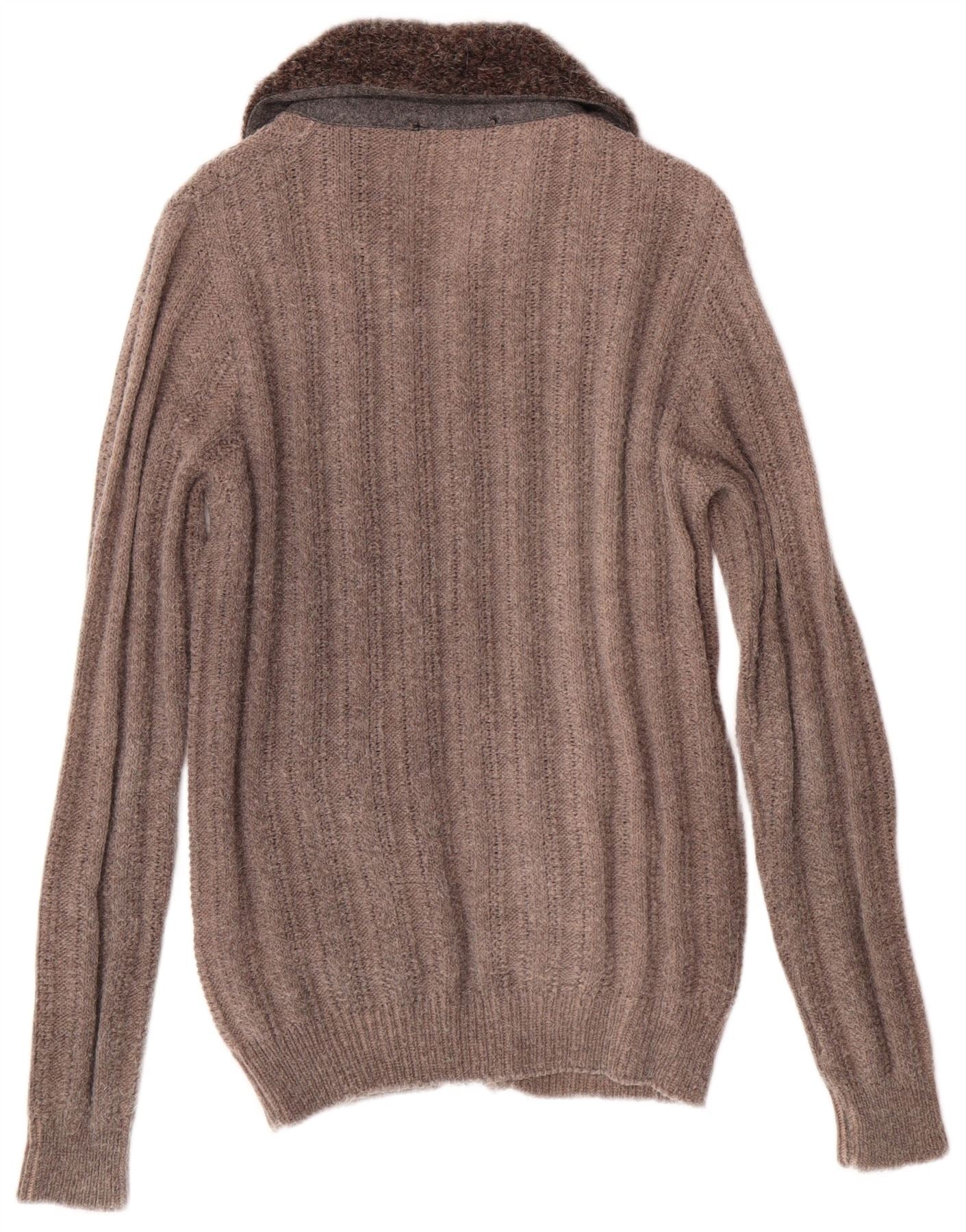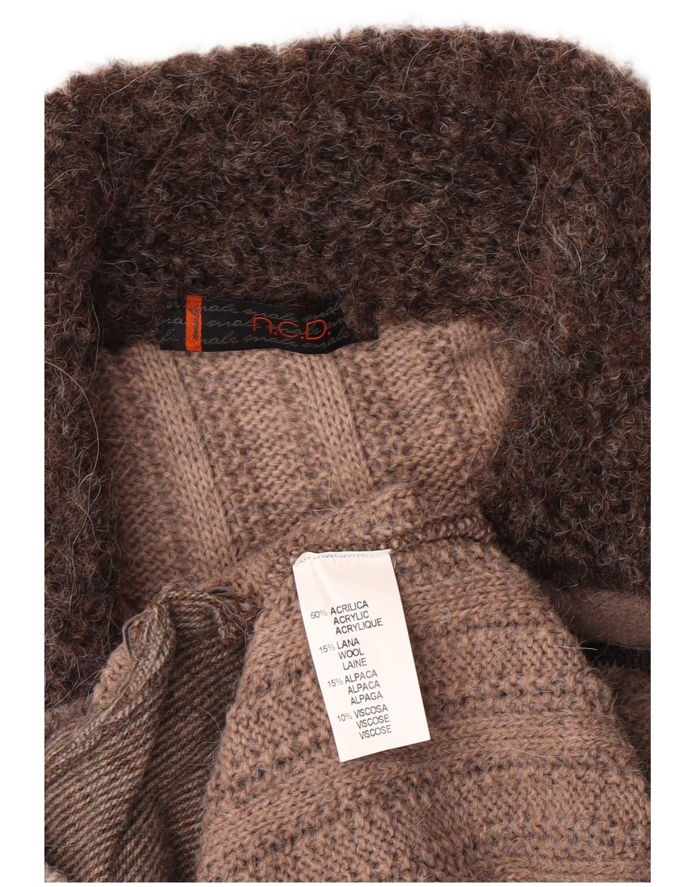 VINTAGE Womens Cardigan Sweater UK 14 Medium Brown Striped Acrylic