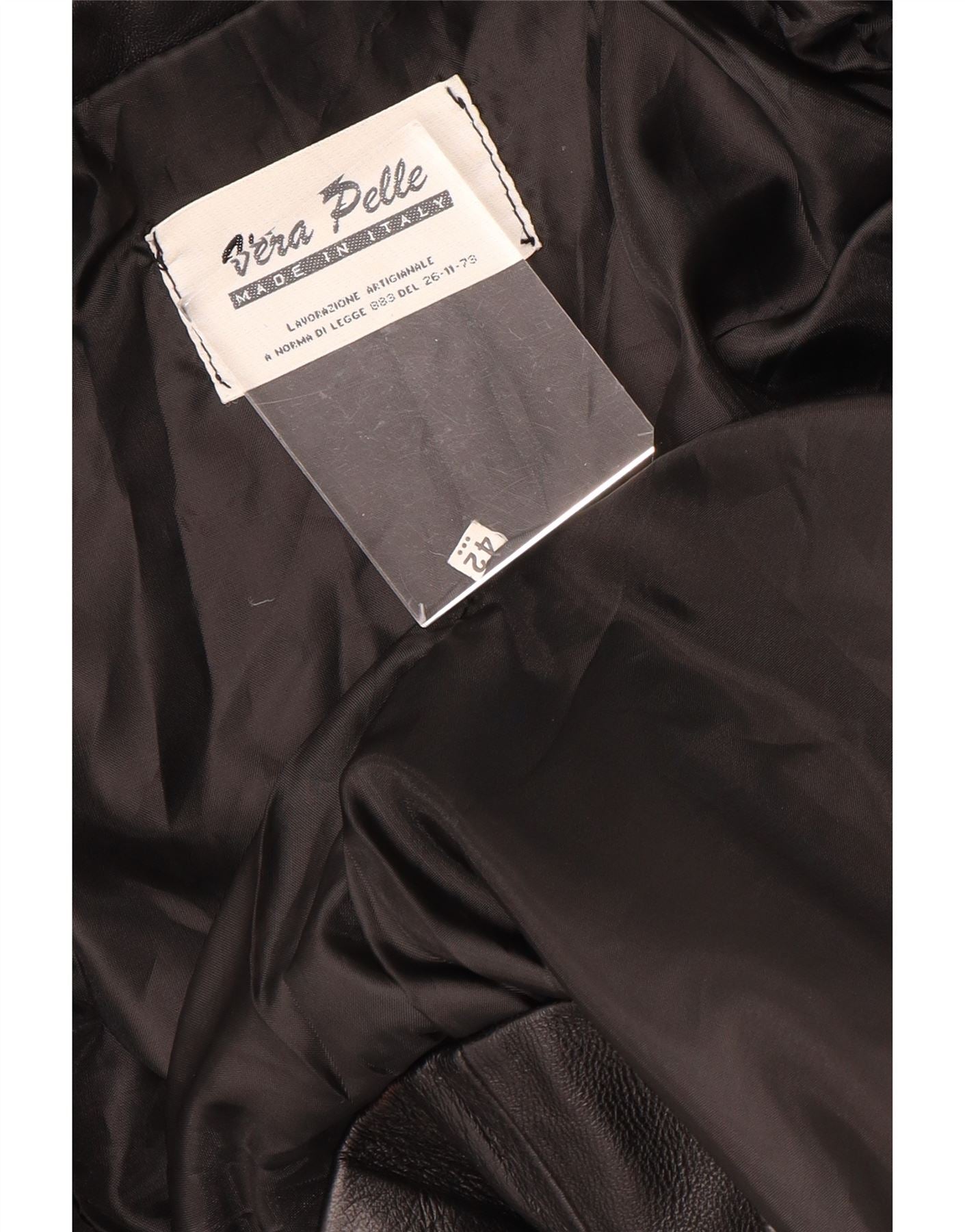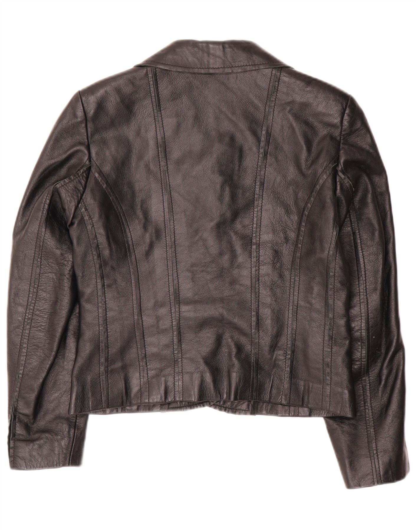 VINTAGE Womens Crop 2 Button Blazer Jacket IT 42 Medium Black Leather