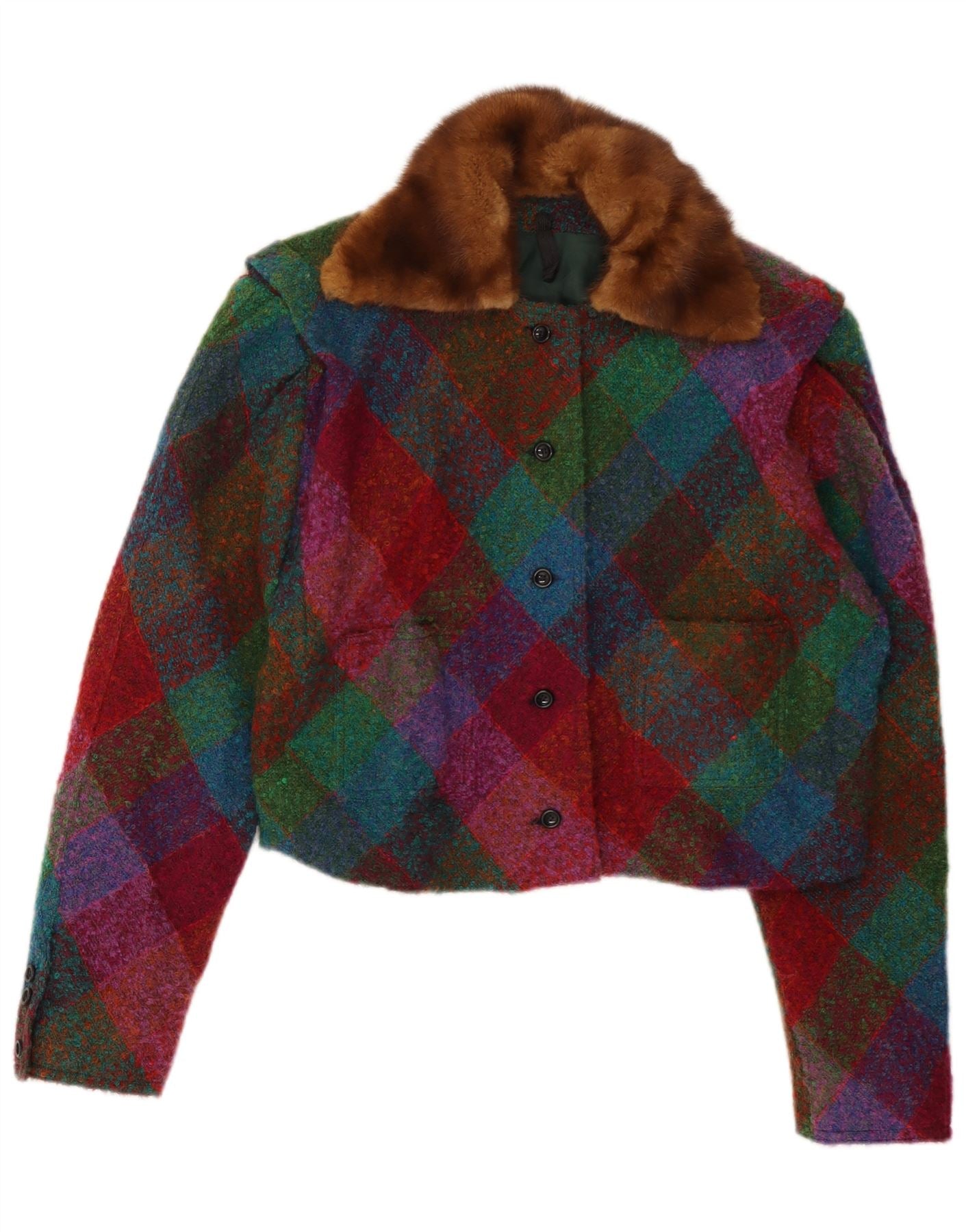 VINTAGE Womens Crop Blazer Jacket UK 14 Large Multicoloured Argyle/Diamond