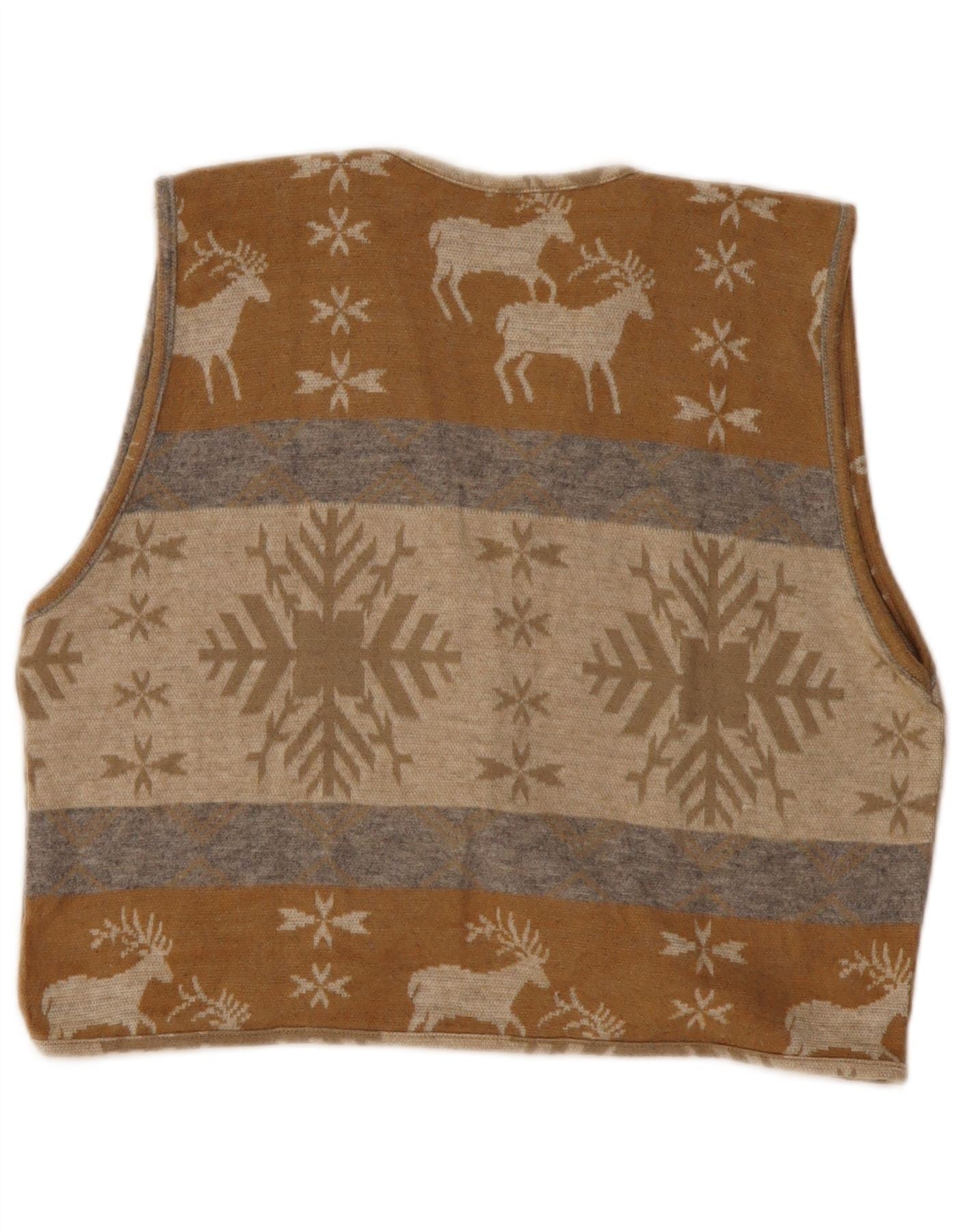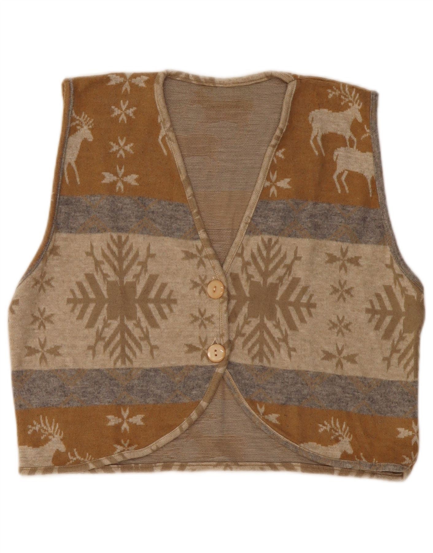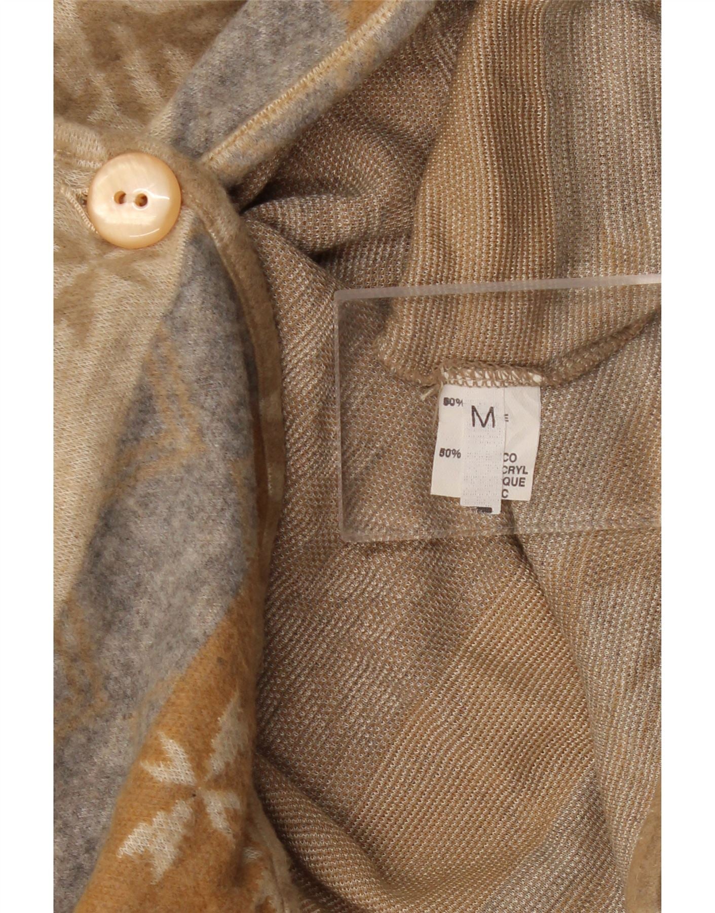 VINTAGE Womens Crop Cardigan Sweater UK 14 Medium Beige Fair Isle