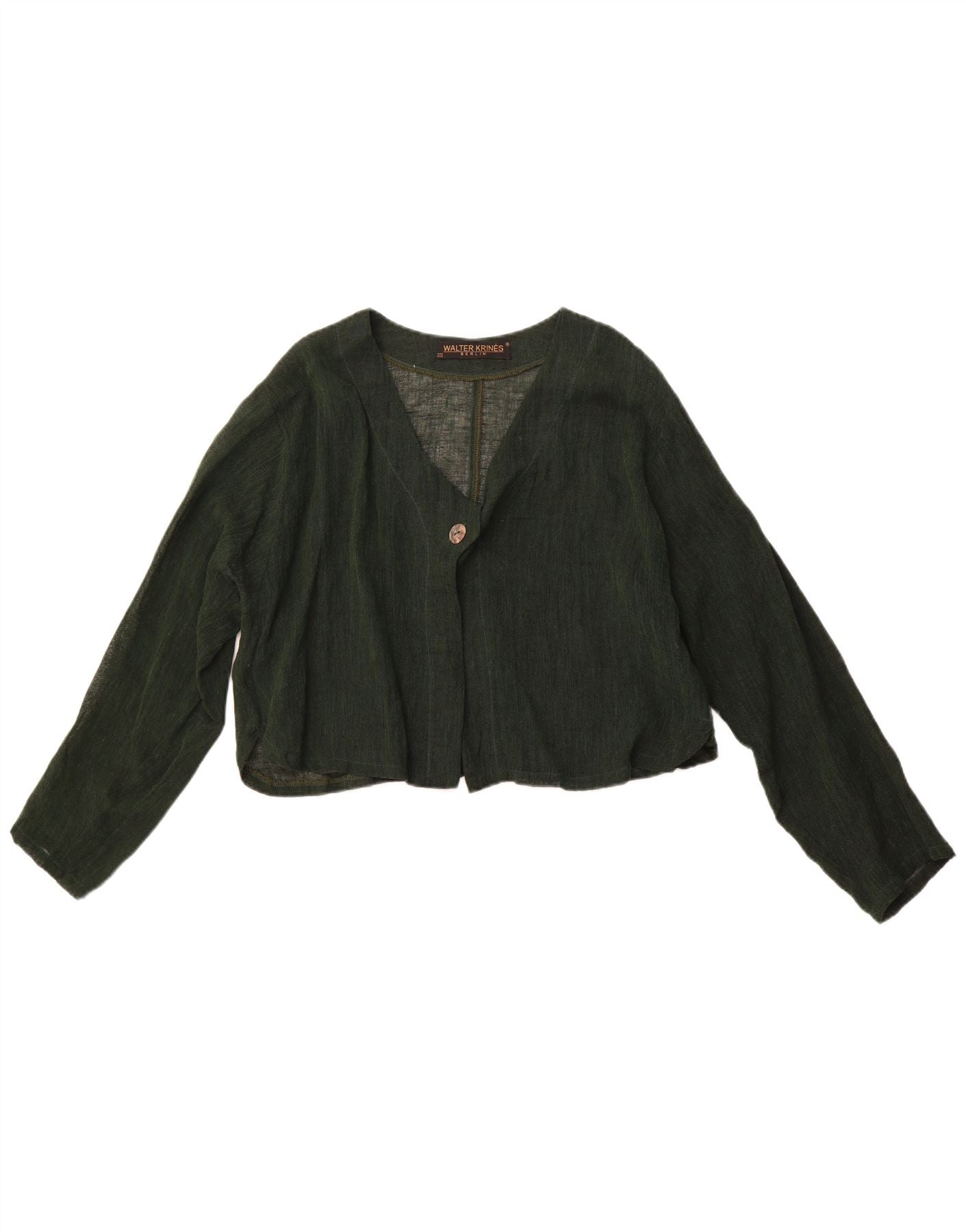 VINTAGE Womens Crop Cardigan Top UK 16 Large Green Cotton