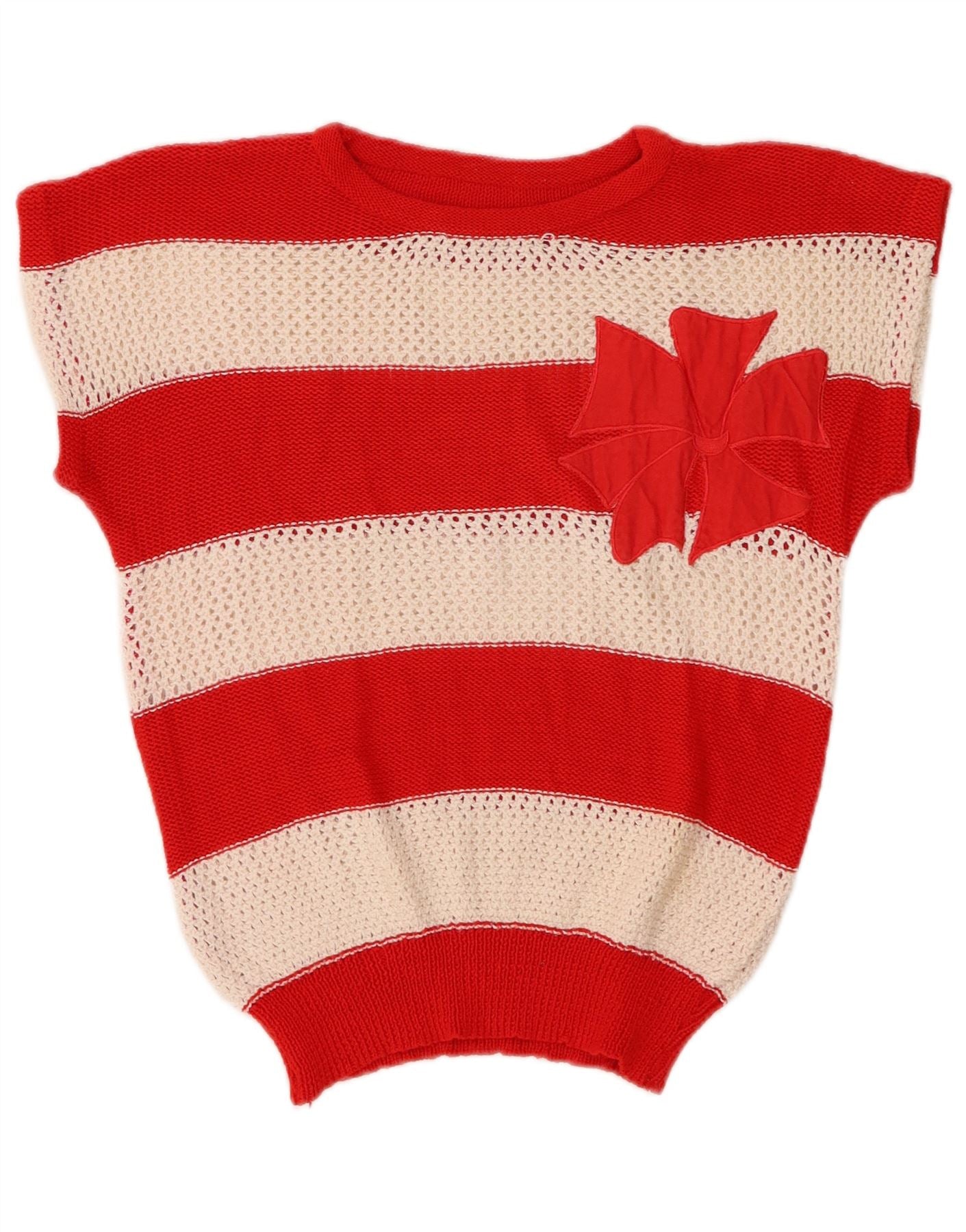 VINTAGE Womens Crop Crew Neck Jumper Sweater UK 14 Medium Multicoloured
