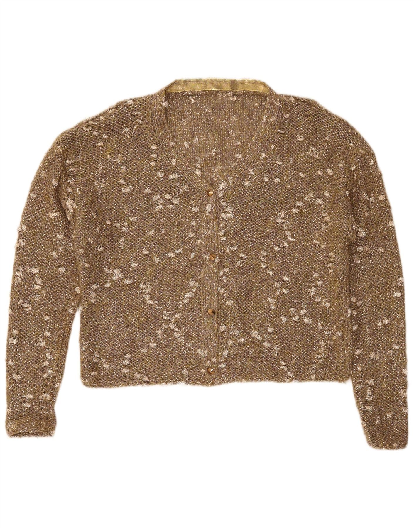 VINTAGE Womens Crop Crochet Cardigan Sweater UK 16 Large Brown Flecked