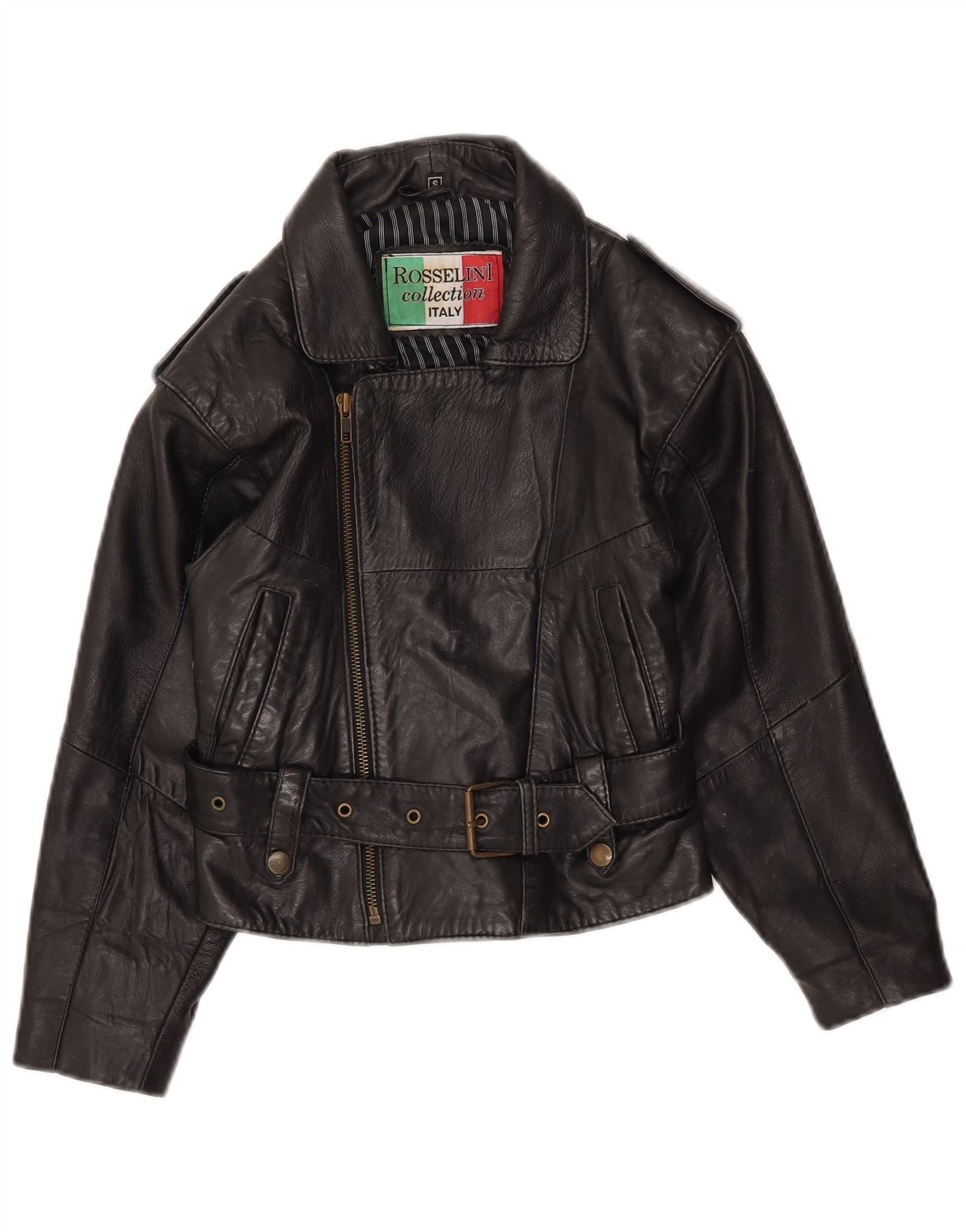 Vintage Womens Crop Leather Biker Jacket UK 8 Small Black Leather