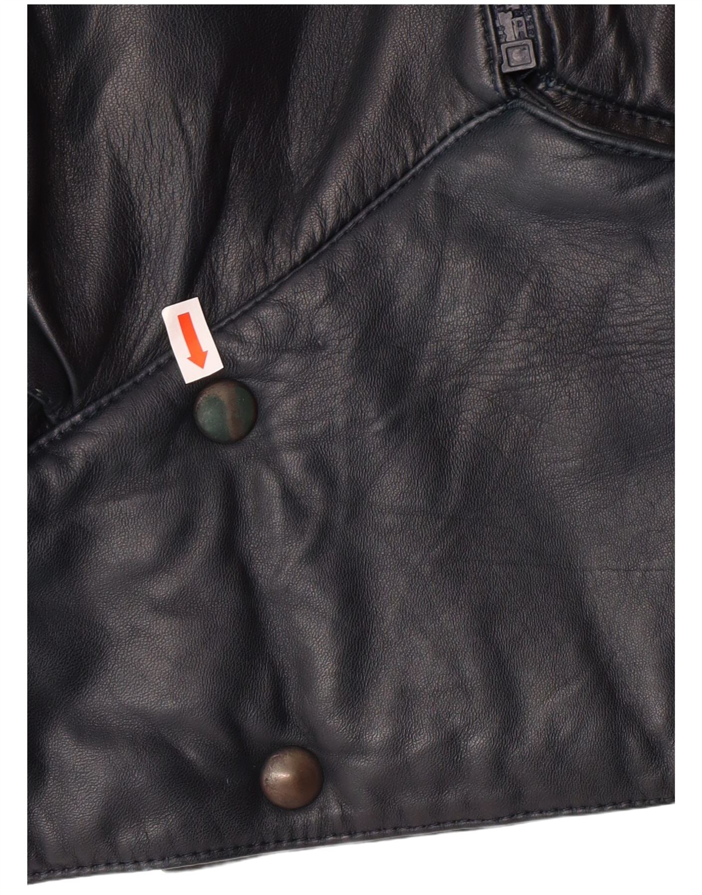 VINTAGE Womens Crop Leather Jacket UK 6 XS Navy Blue