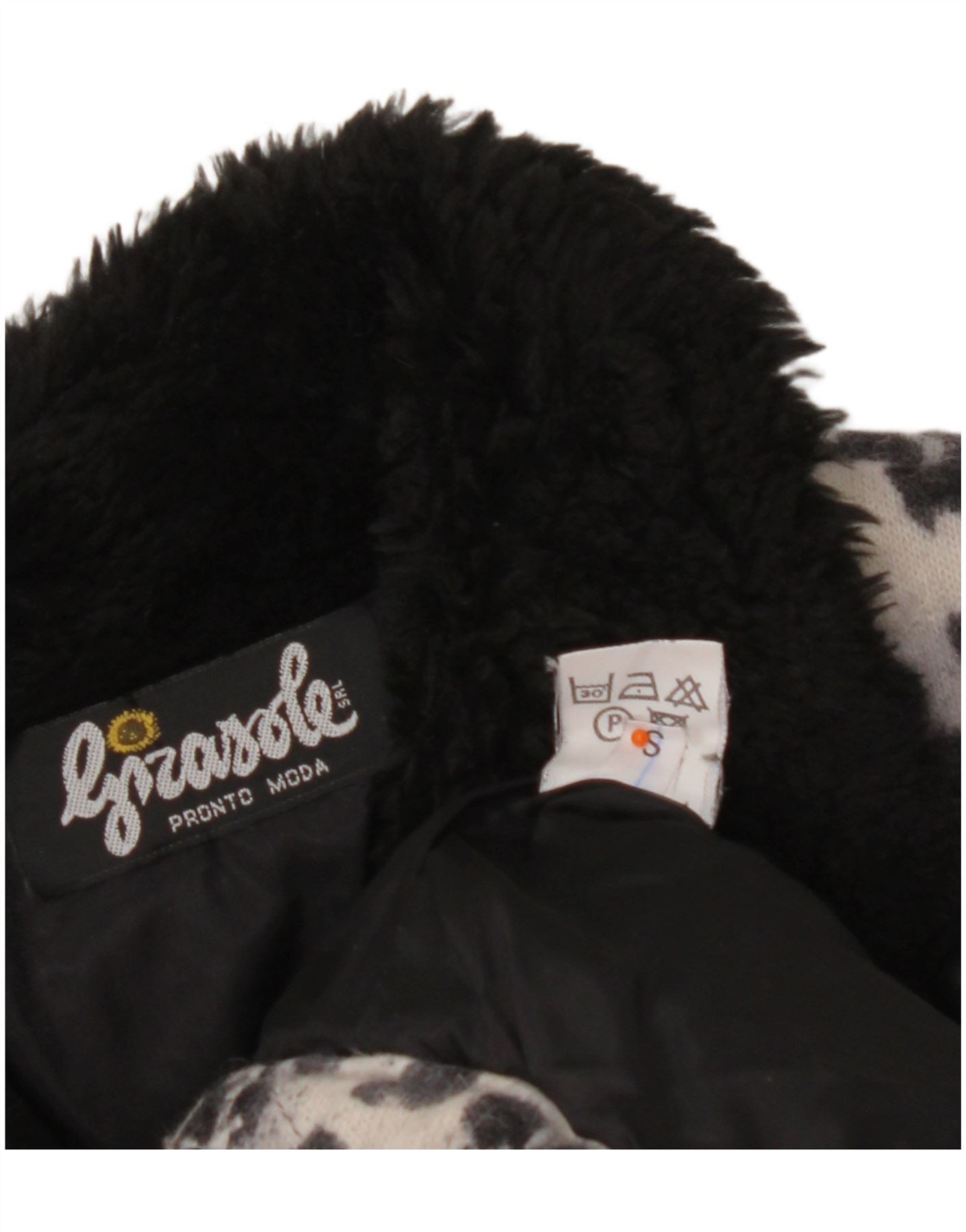 VINTAGE Womens Crop Oversized Bomber Jacket UK 10 Small Grey Animal Print