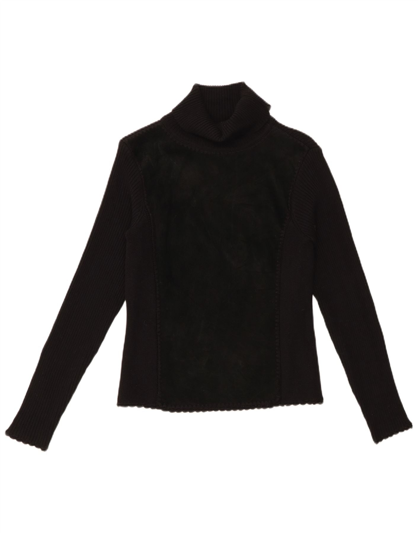 VINTAGE Womens Crop Roll Neck Jumper Sweater UK 8 Small Black