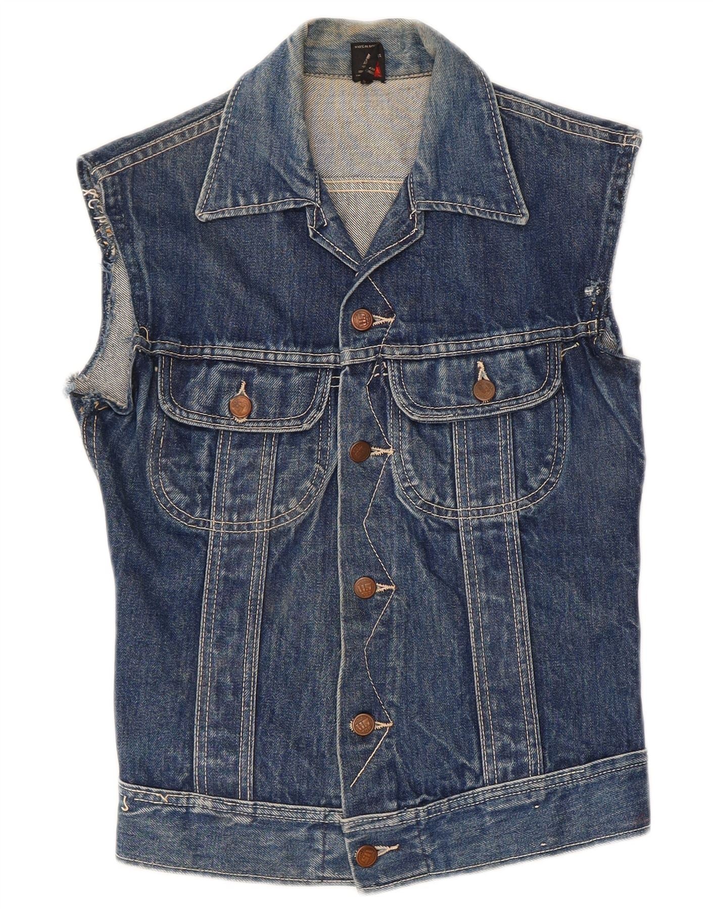 Vintage Womens Denim Gilet UK 8 Small Blue Cotton