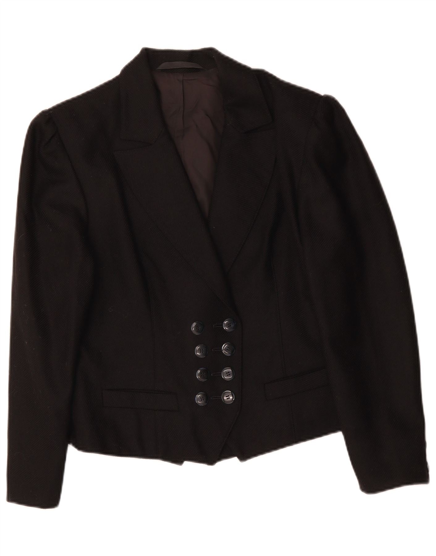 VINTAGE Womens Double Breasted Blazer Jacket UK 14 Medium Black