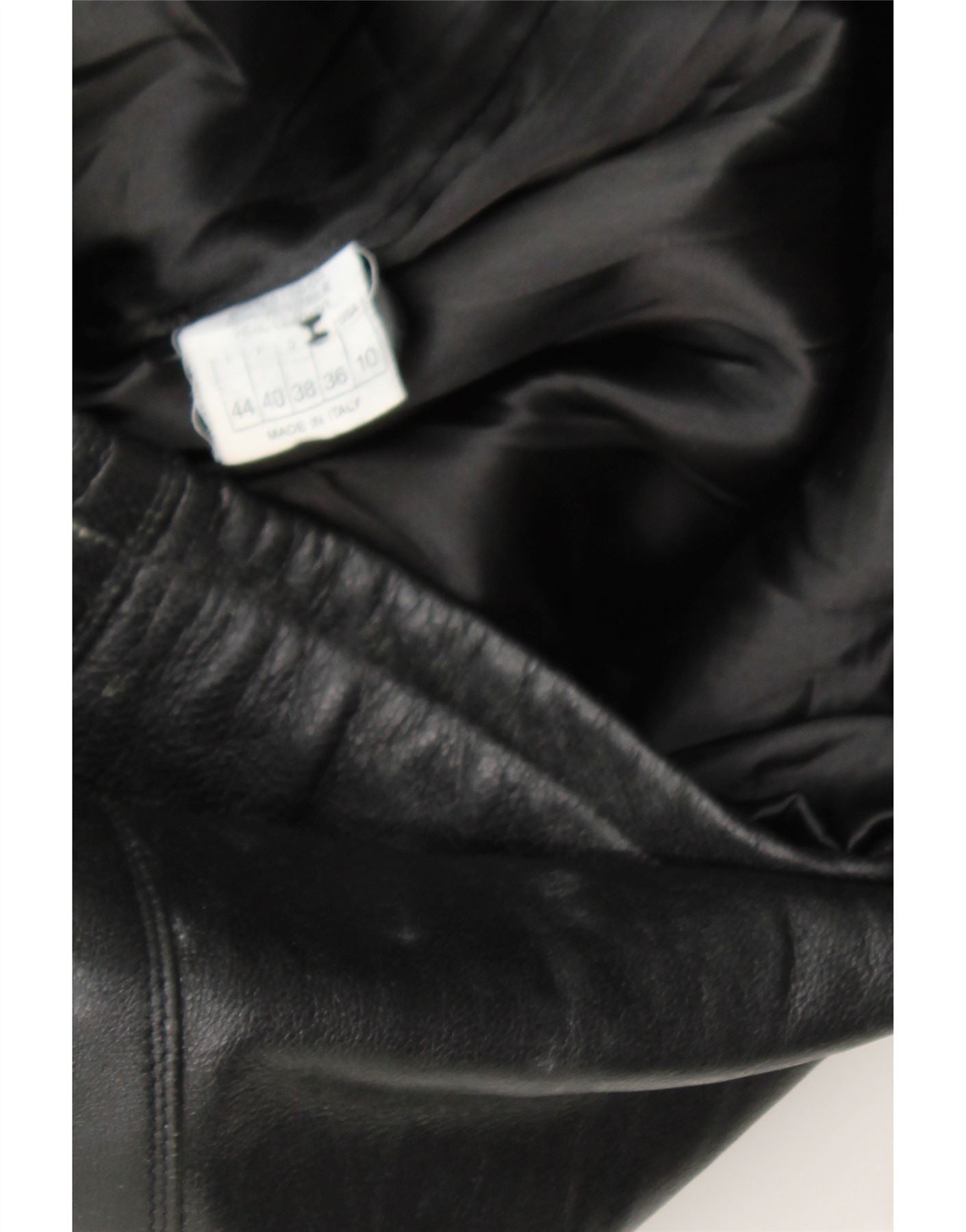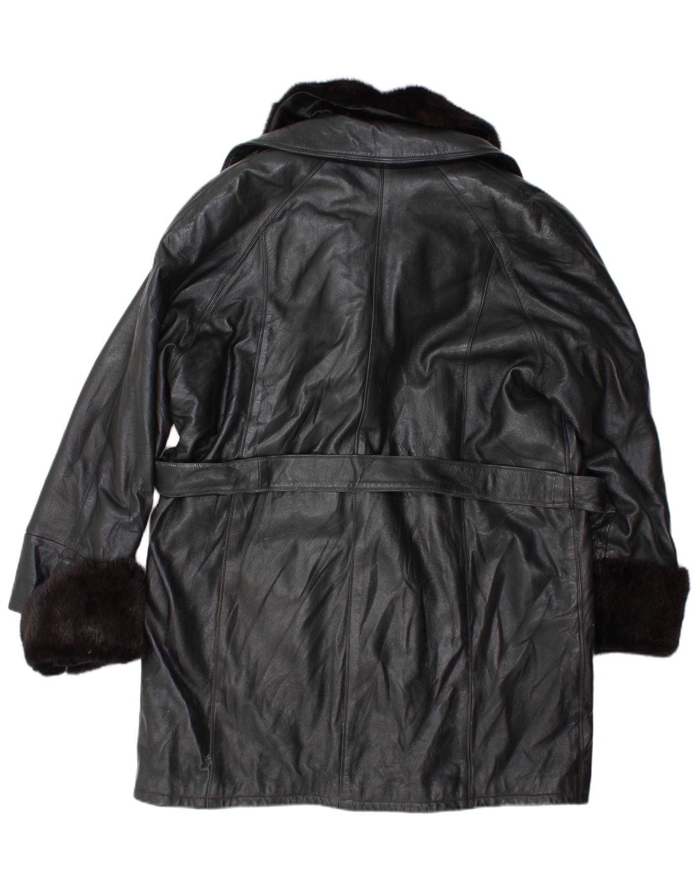 VINTAGE Womens Double Breasted Leather Coat US 10 Large Black Leather