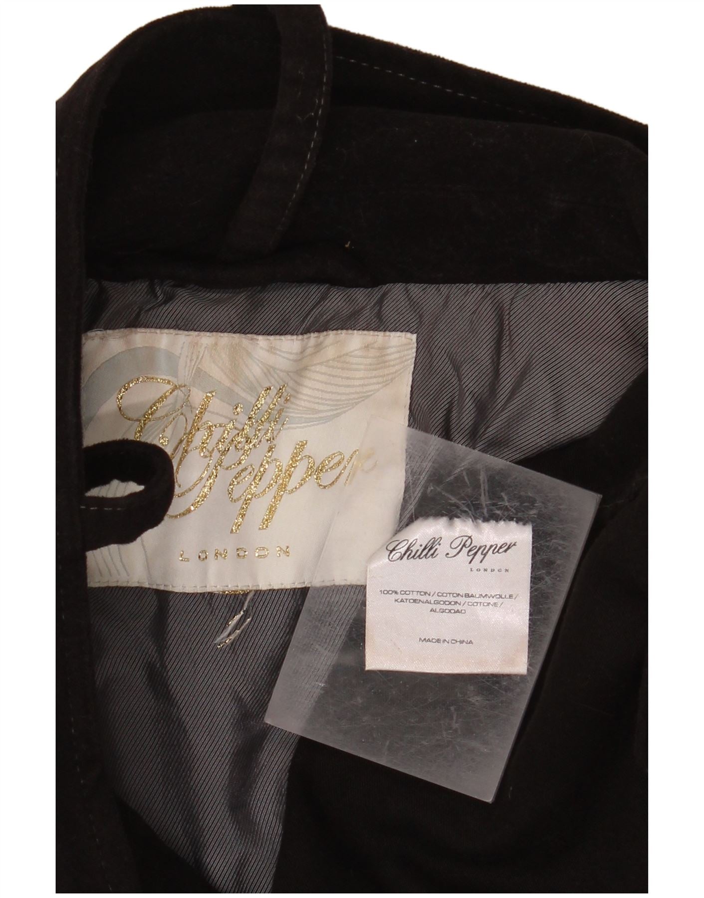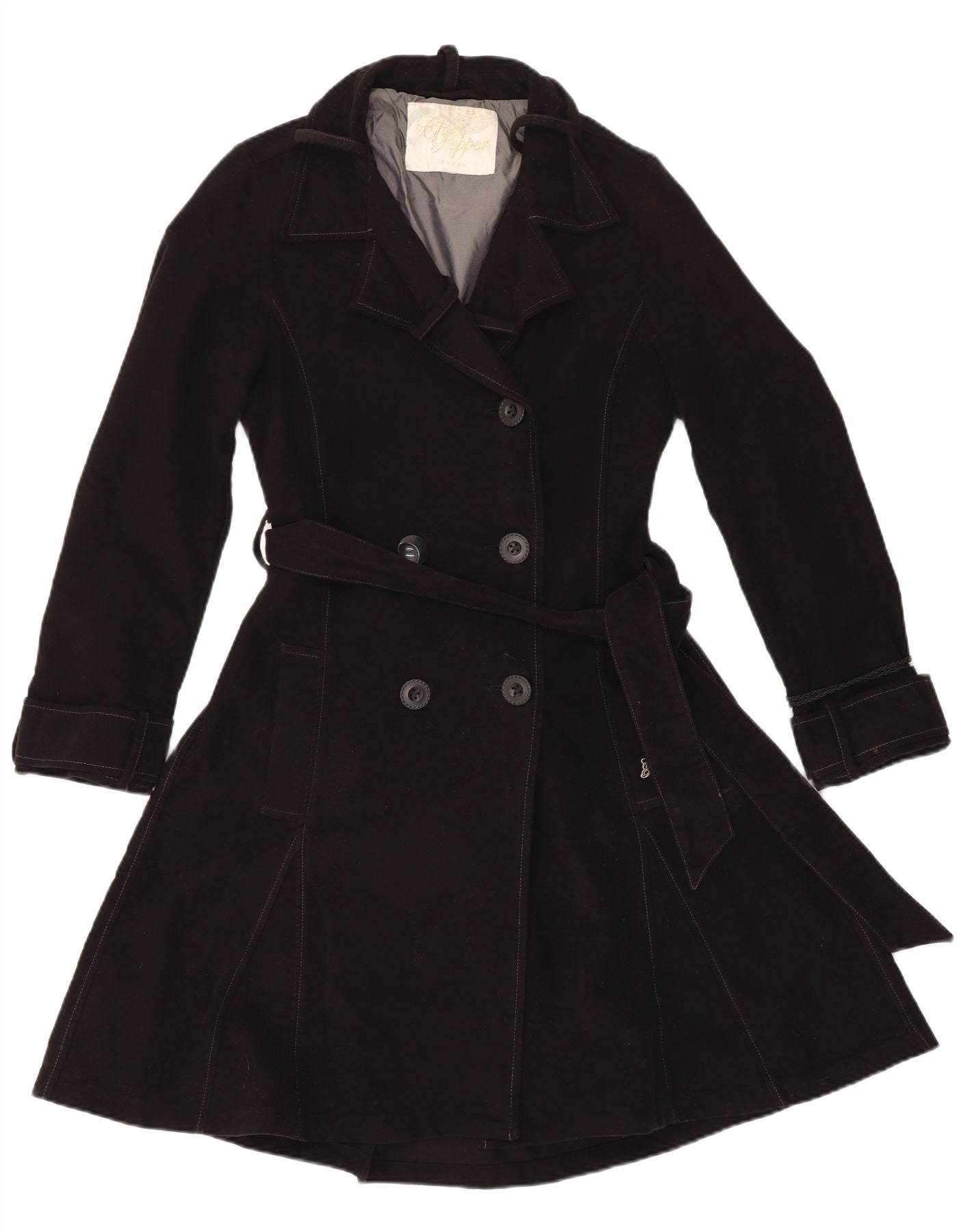 VINTAGE Womens Double Breasted Trench Coat UK 14 Medium Black Cotton