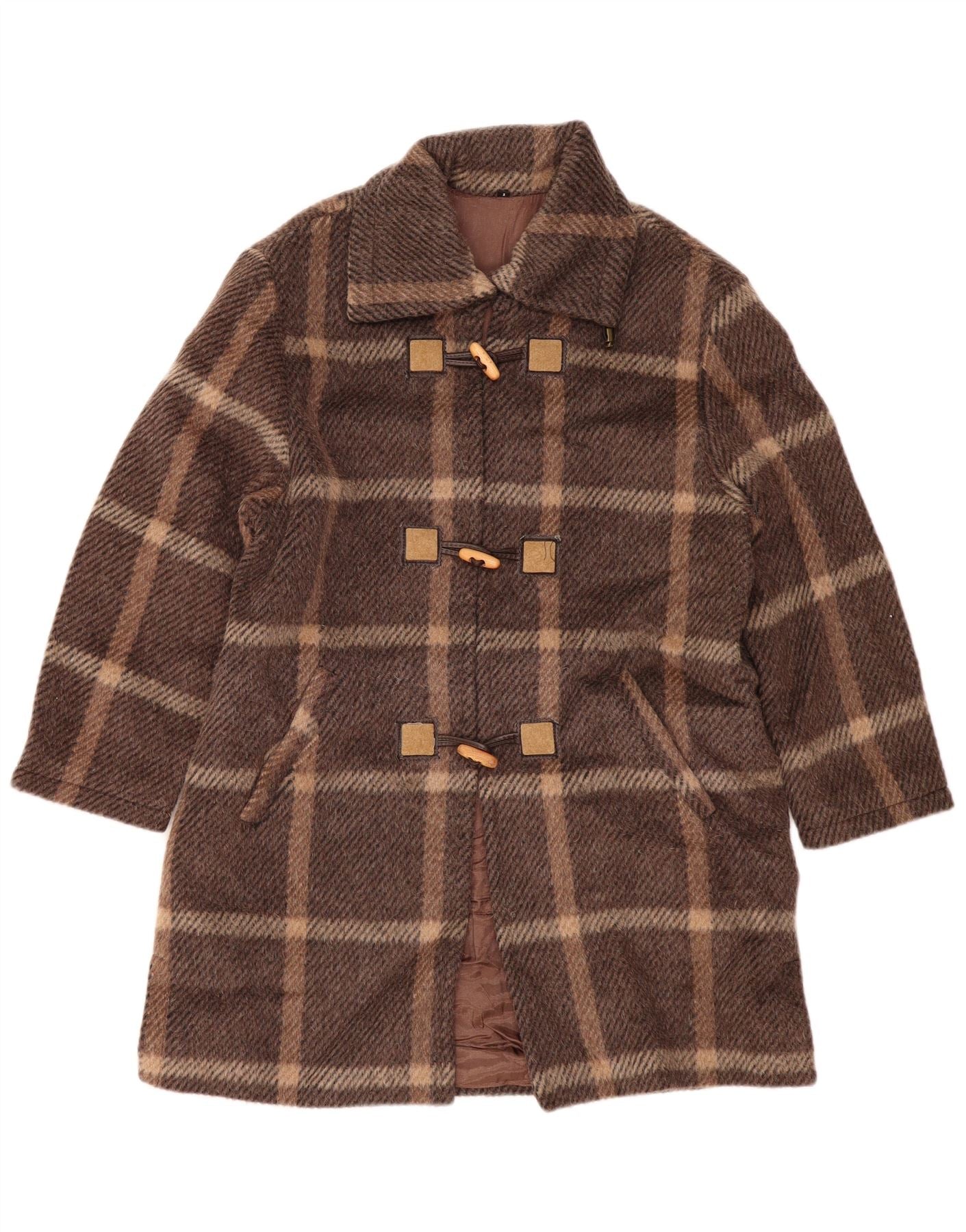 VINTAGE Womens Duffle Coat US 1 XS Brown Check Wool