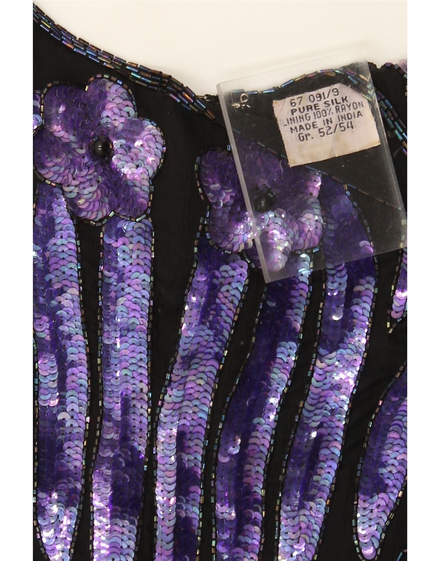 Vintage Womens Evening Sequin 3/4 Sleeve Blouse Top EU 52 2XL Black Floral