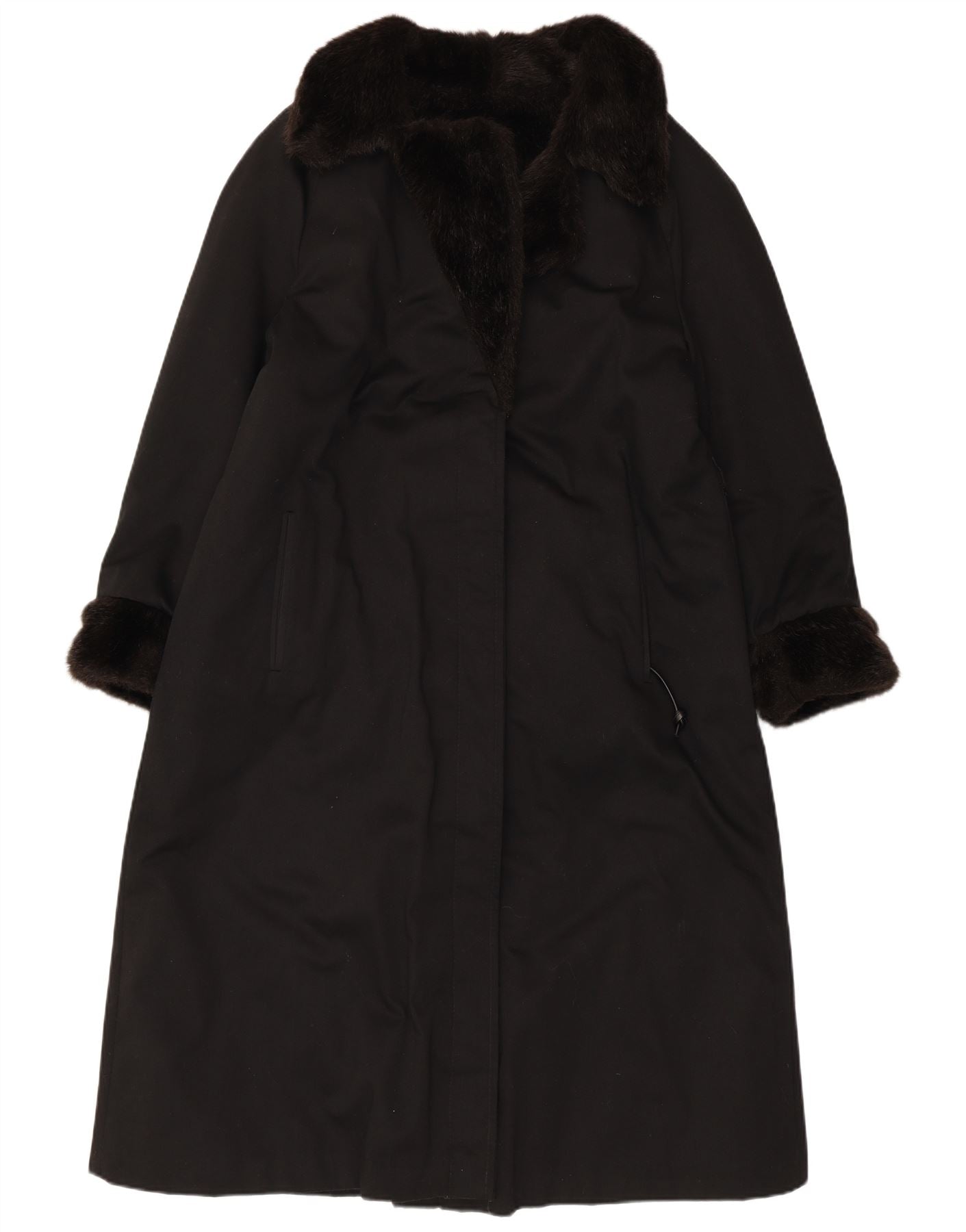 VINTAGE Womens Faux Fur Overcoat UK 12 Medium Black Acrylic