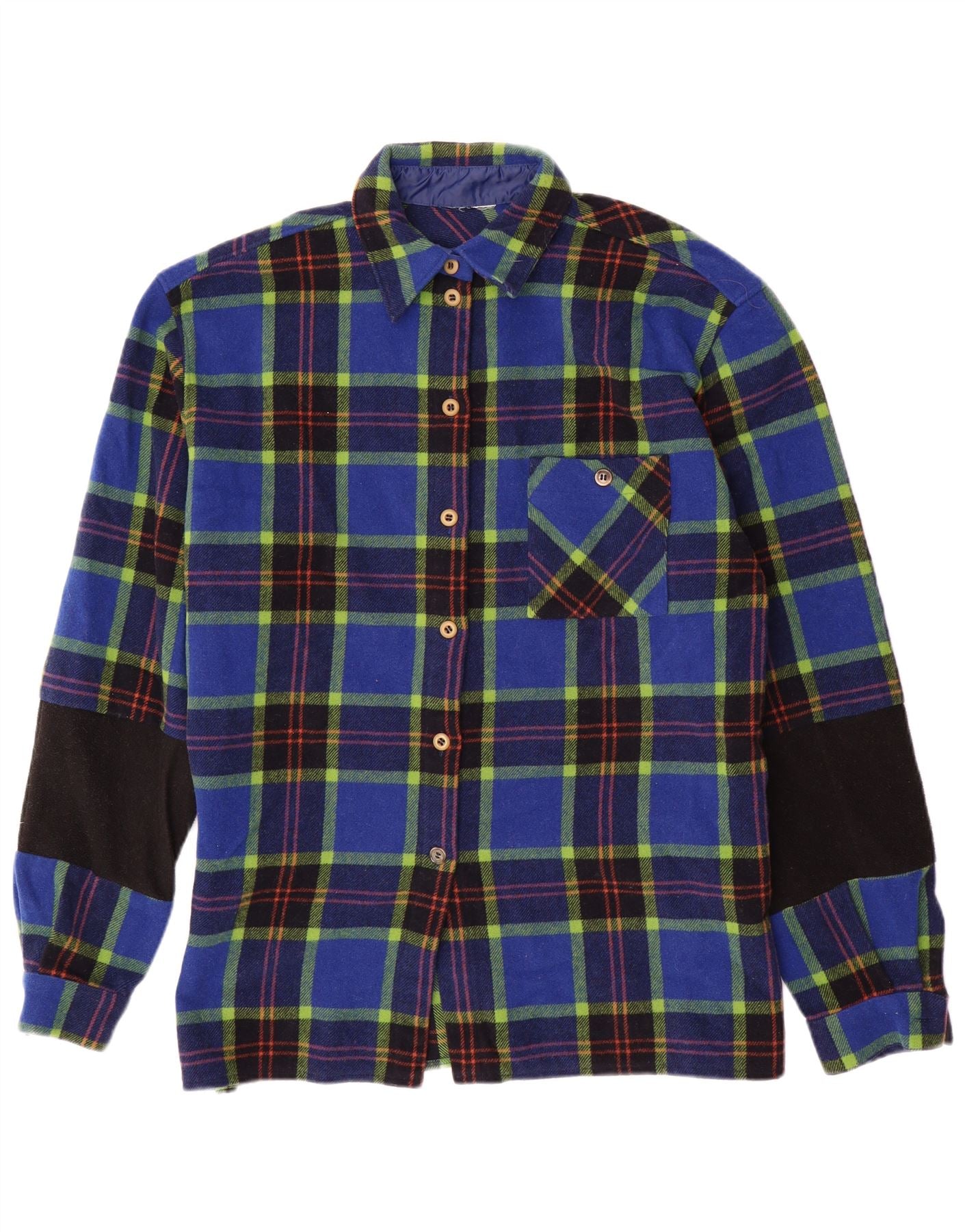 VINTAGE Womens Flannel Shirt UK 20 2XL Blue Check Wool