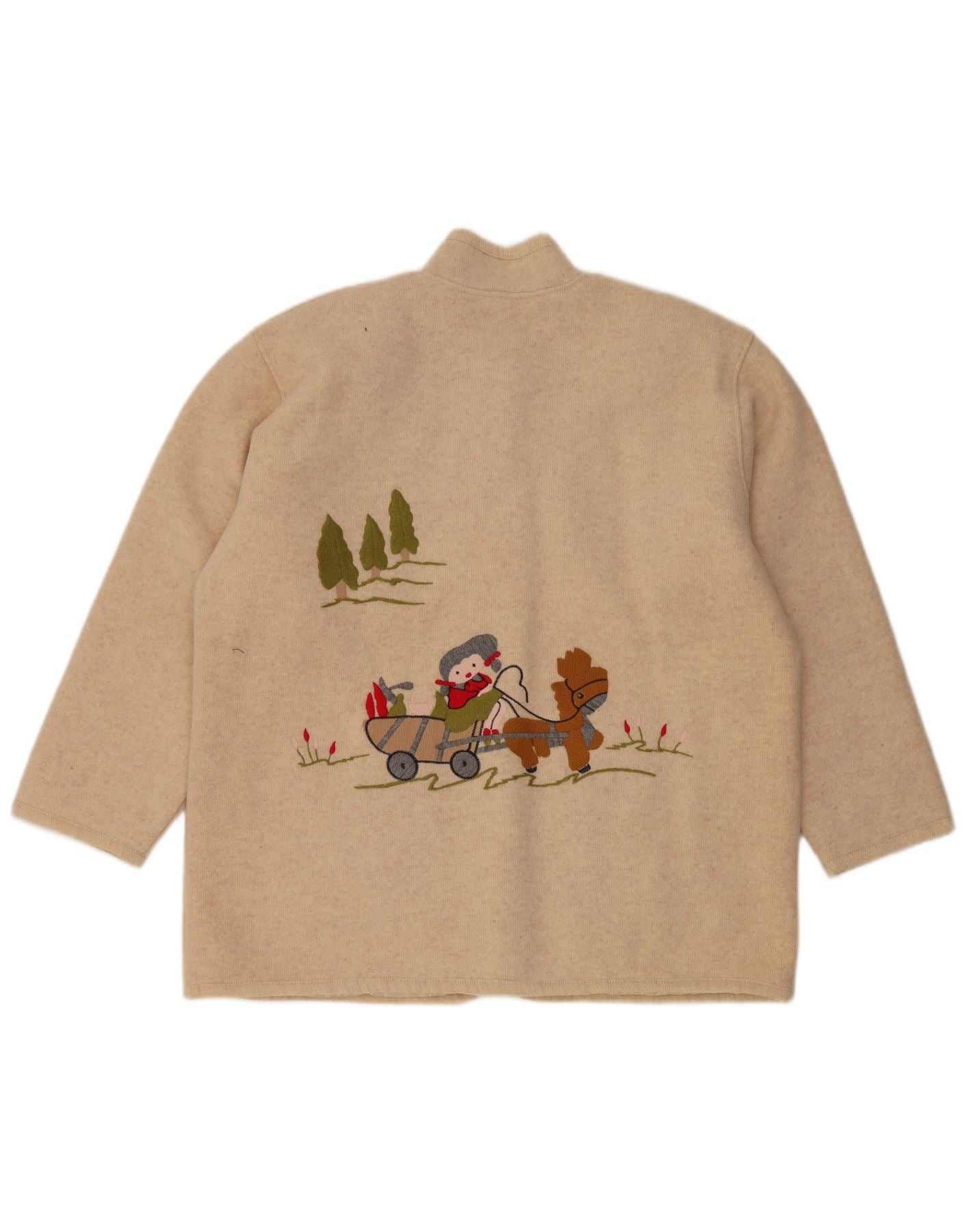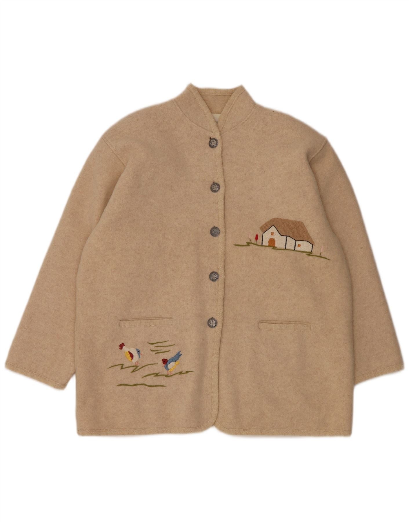 VINTAGE Womens Graphic 5 Button Blazer Jacket UK 14 Large Beige