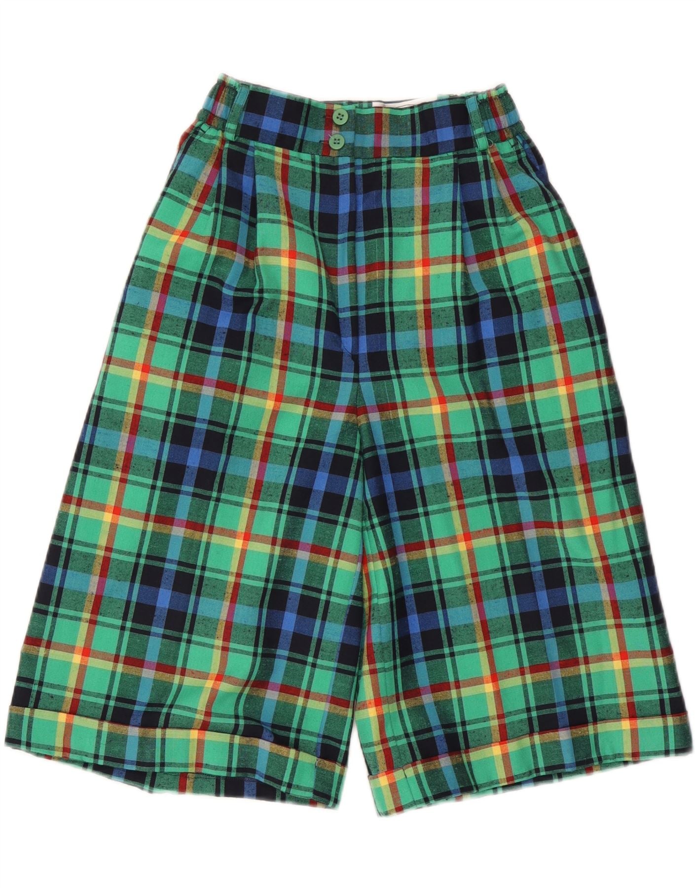 VINTAGE Womens High Waist Bermuda Shorts UK 10 Small W24 Green Check