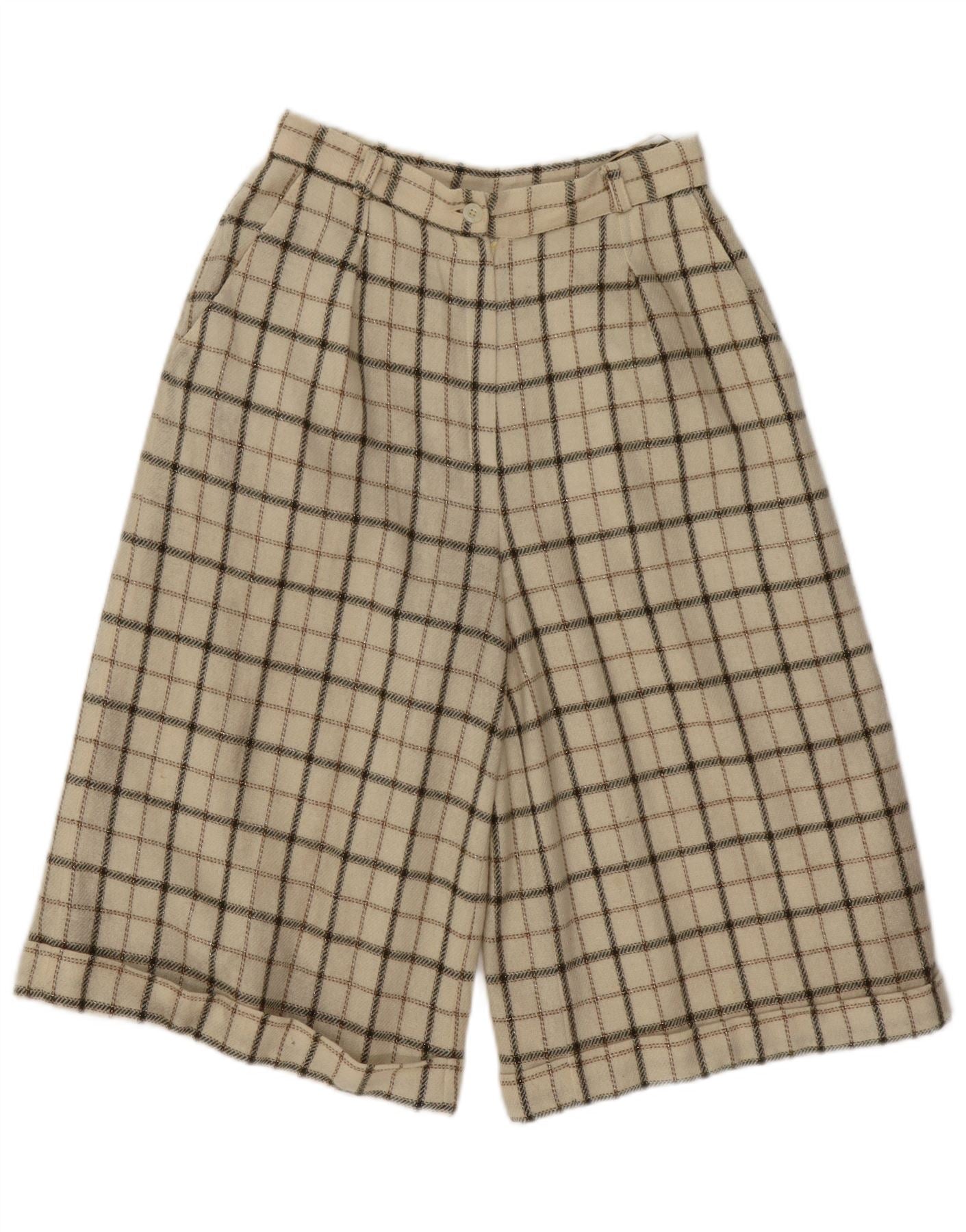 Home > Women's > Depop Clothing > VINTAGE Womens High Waist Casual Shorts Medium W26 Beige Check Wool