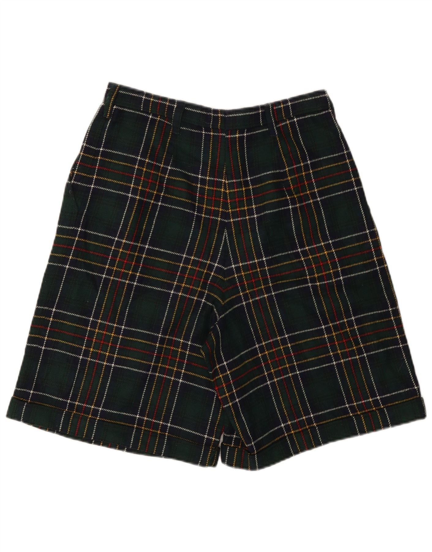 VINTAGE Womens High Waist Casual Shorts W28 Medium Green Plaid