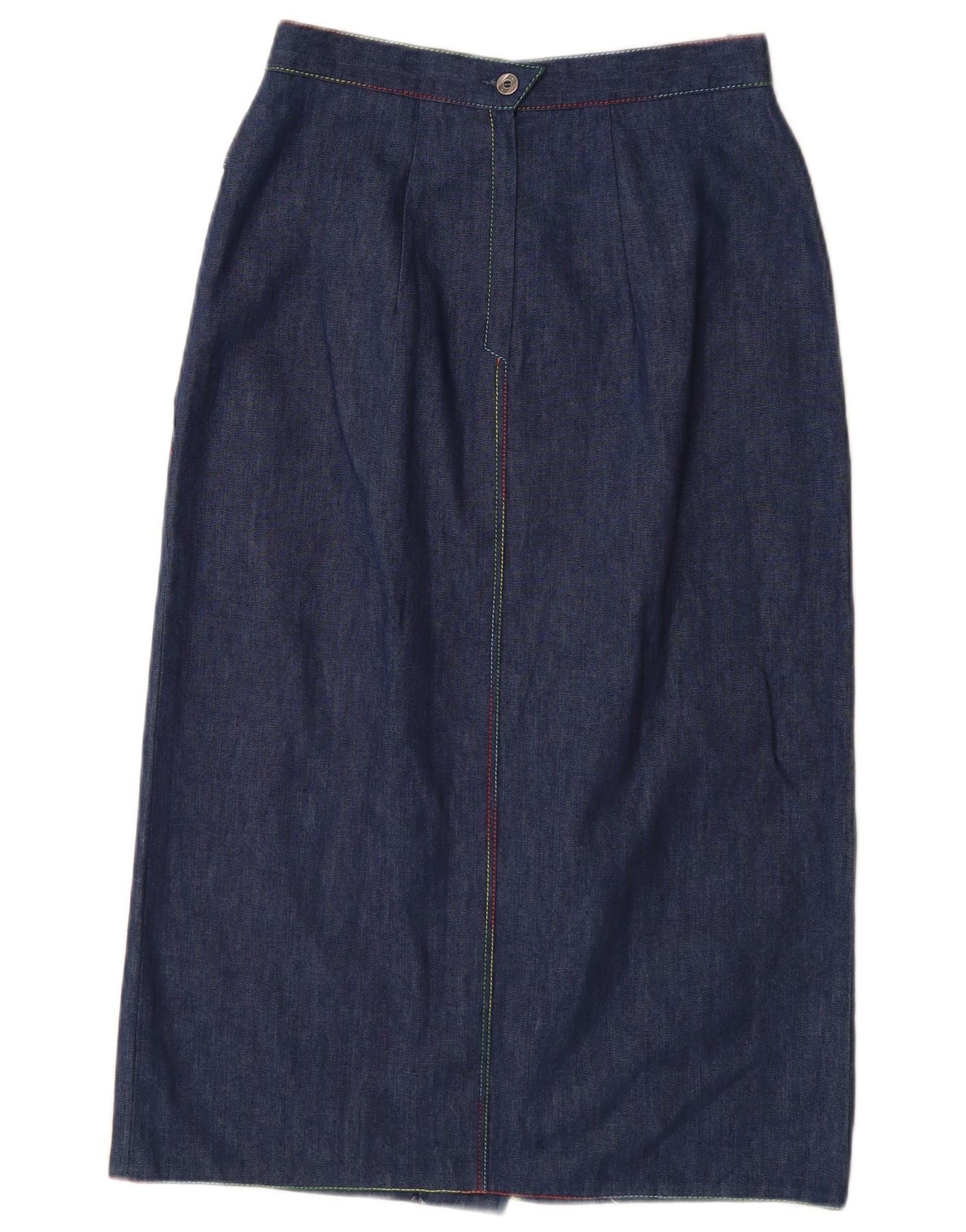 VINTAGE Womens High Waist Denim Skirt EU 38 Medium W26 Navy Blue Cotton