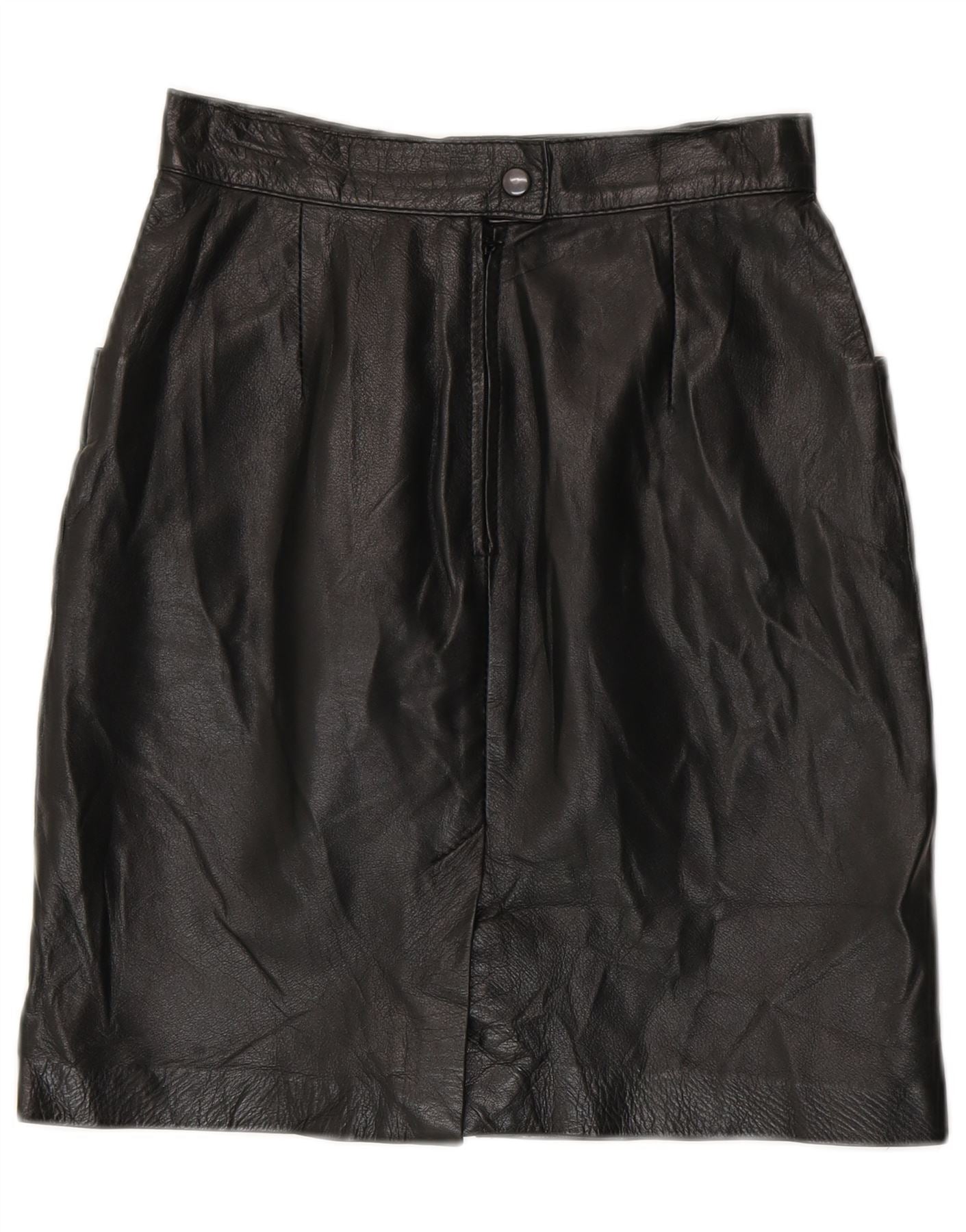 Vintage Womens High Waist Leather Skirt IT 42 Medium W24 Black