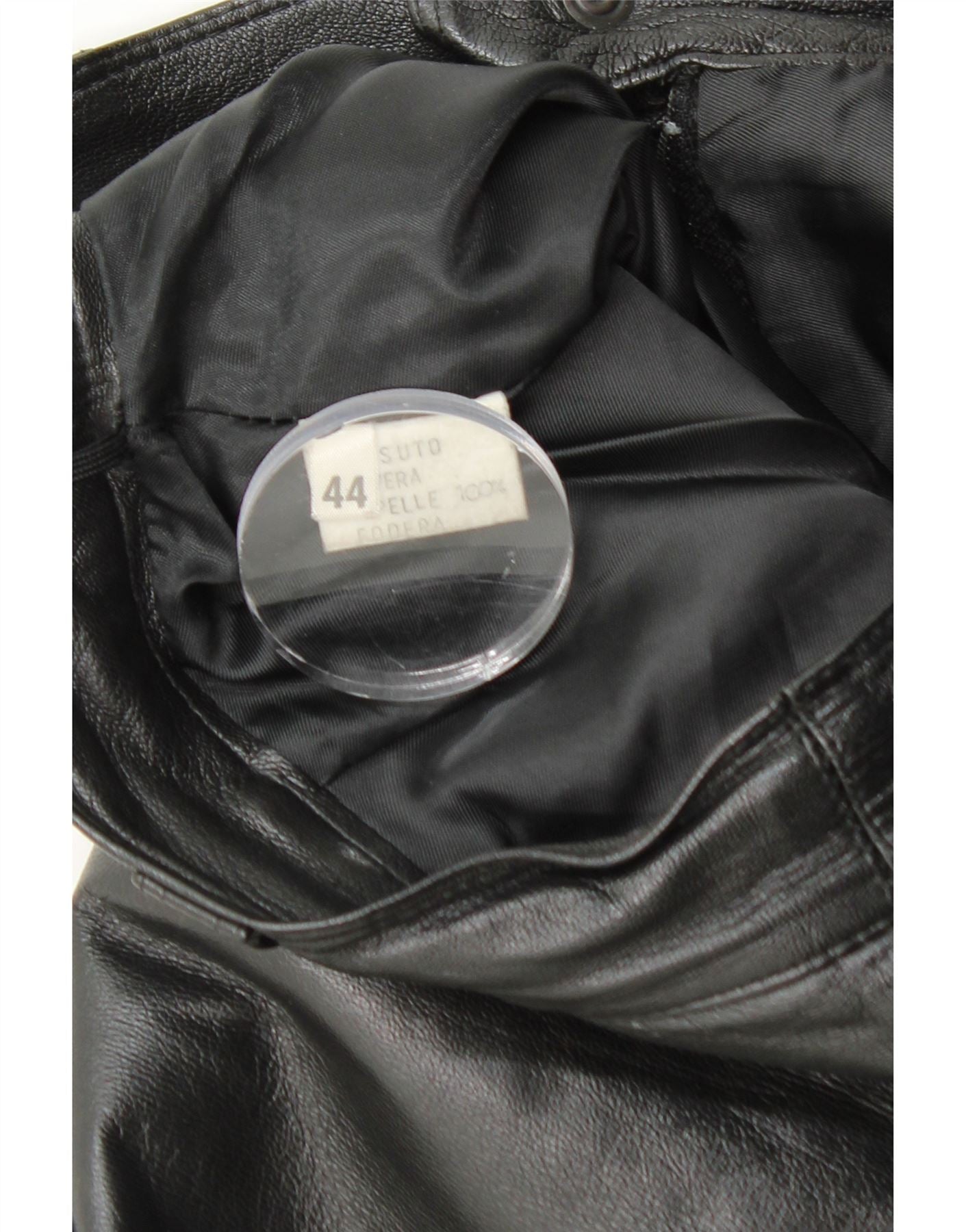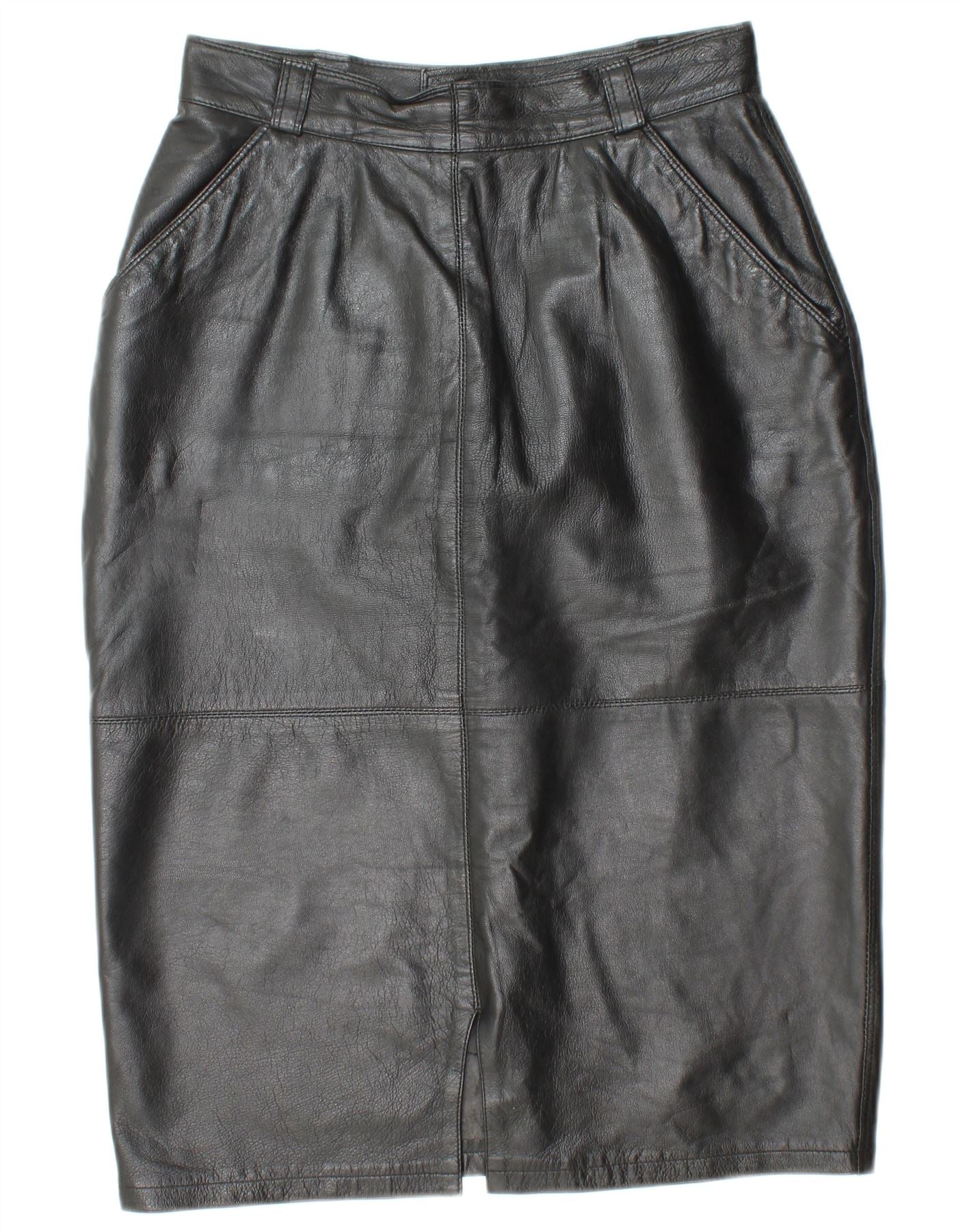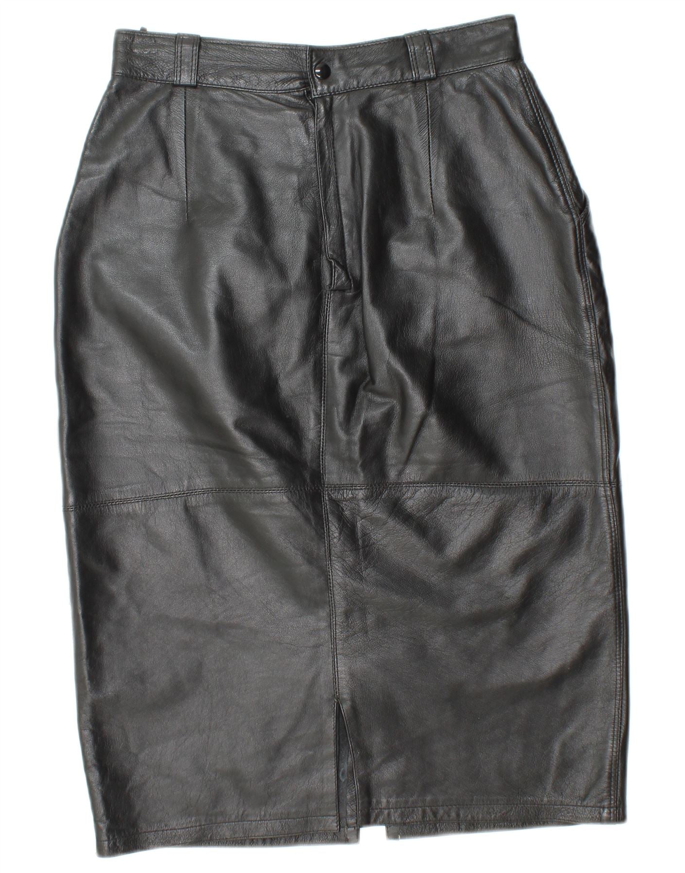 VINTAGE Womens High Waist Leather Skirt IT 44 Medium W26 Black Leather