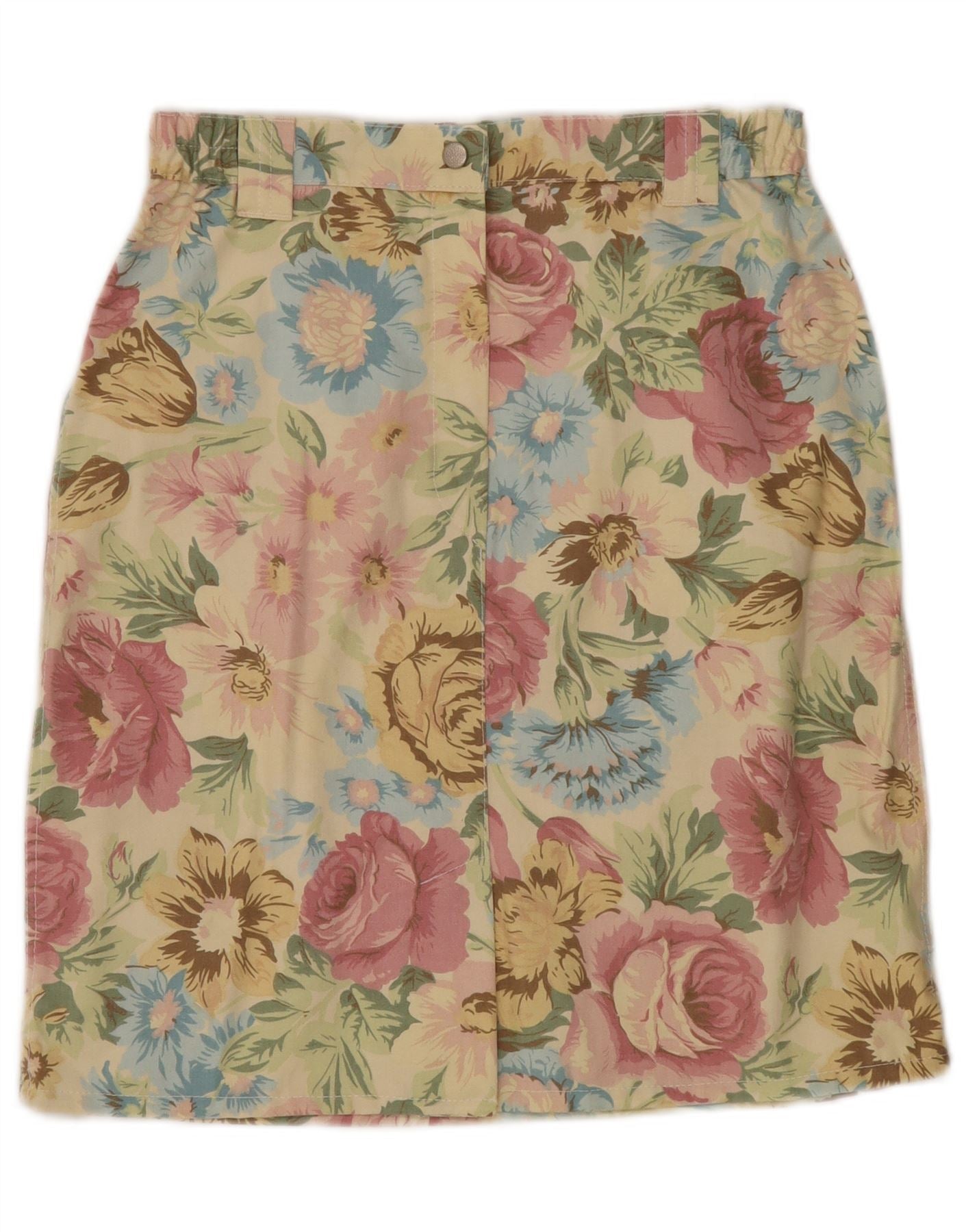 VINTAGE Womens High Waist Straight Skirt W30 Medium Yellow Floral