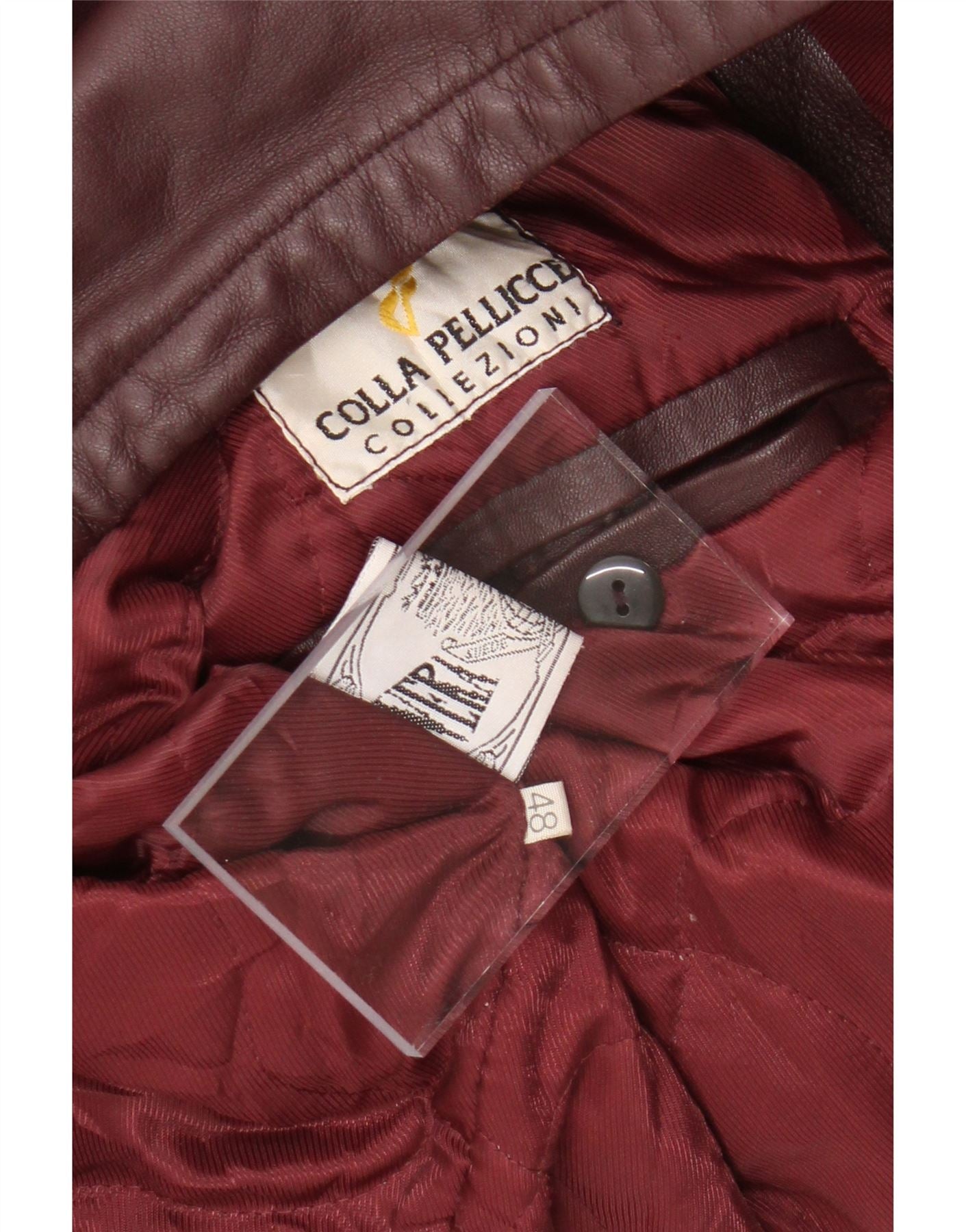 VINTAGE Womens Hooded Leather Jacket IT 48 XL Burgundy Leather