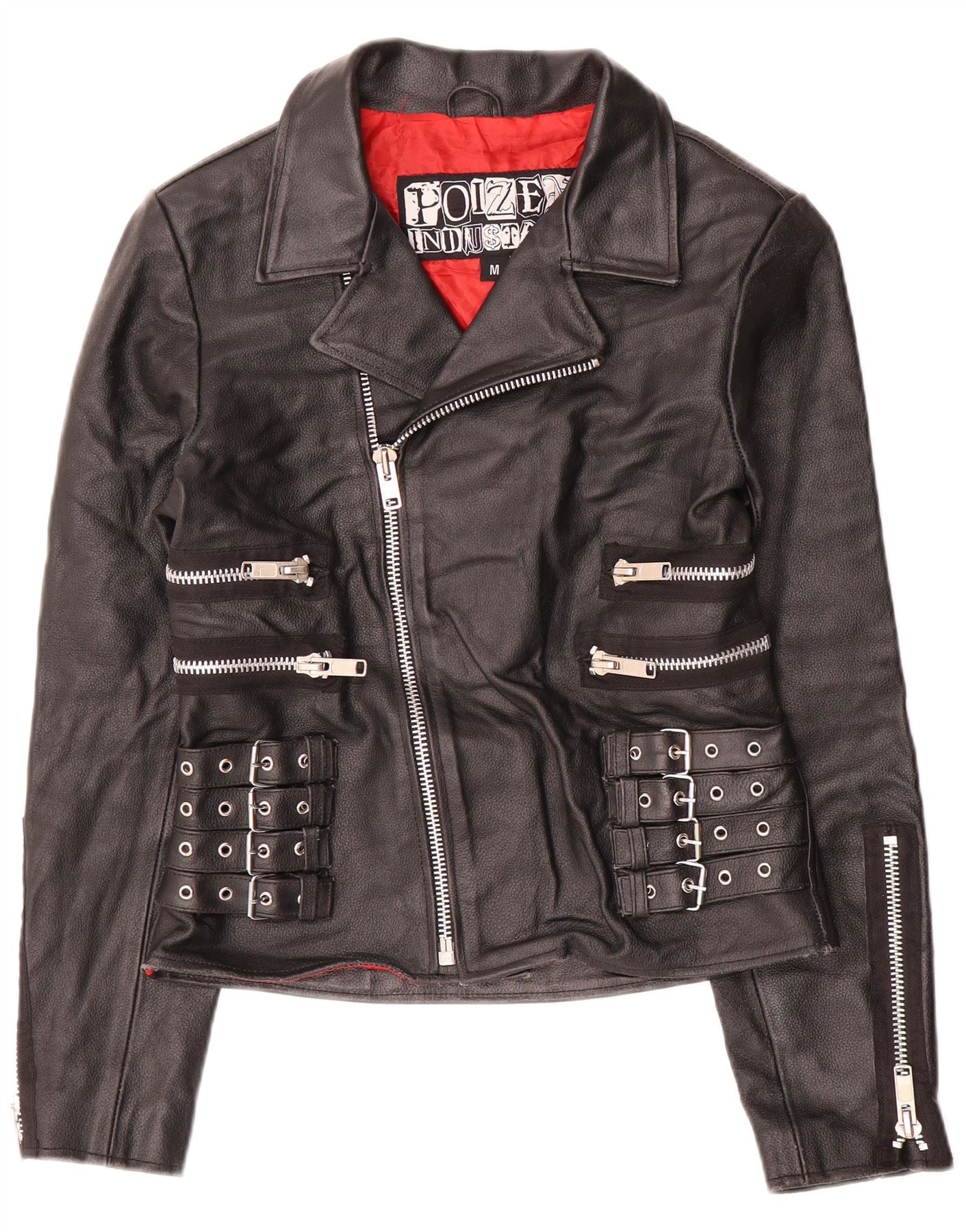 VINTAGE Womens Leather Biker Jacket UK 12 Medium Black Leather