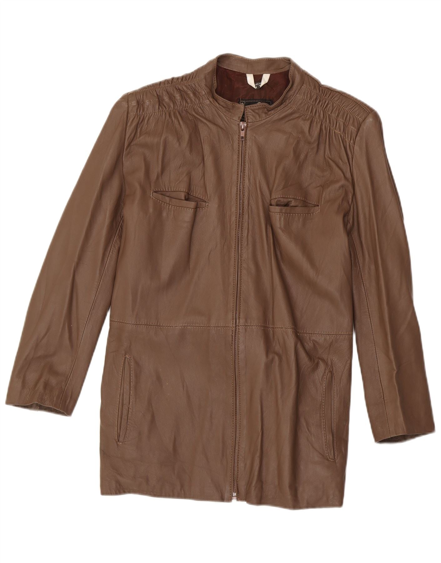 Vintage Womens Leather Coat UK 14 Medium Brown Leather