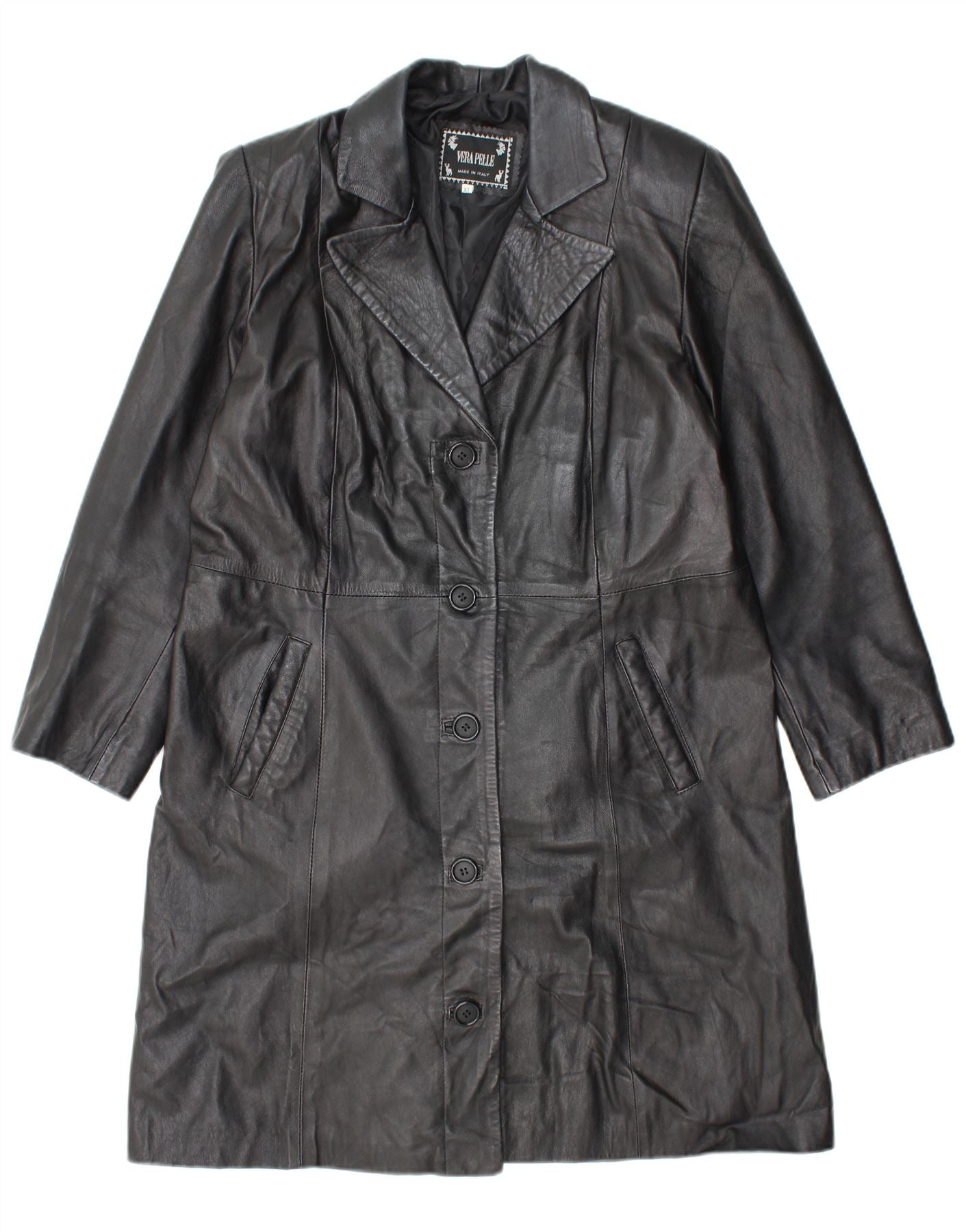 VINTAGE Womens Leather Coat UK 18 XL Black Leather