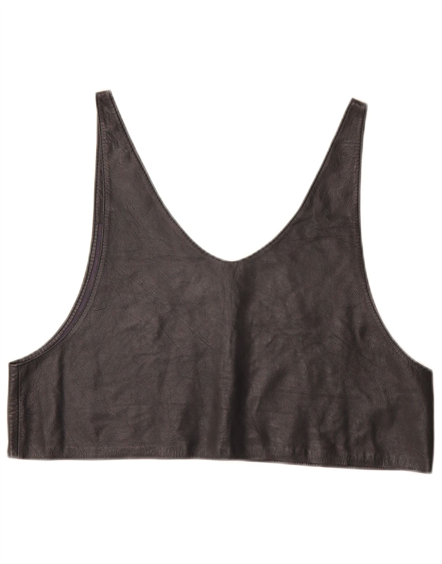 VINTAGE Womens Leather Crop Top UK 12 Medium Black
