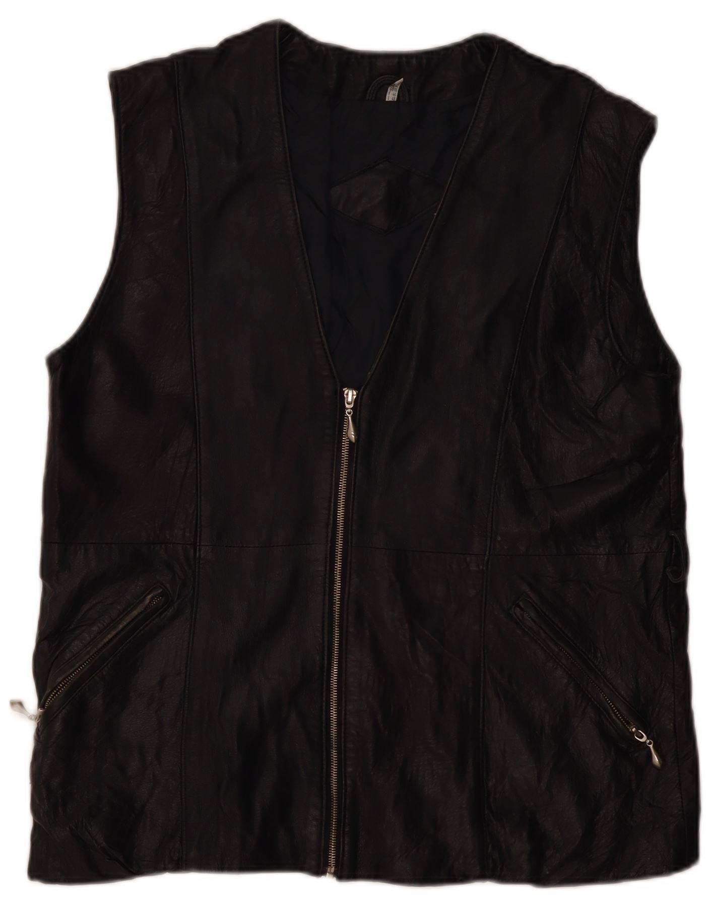 VINTAGE Womens Leather Gilet UK 16 Large Black