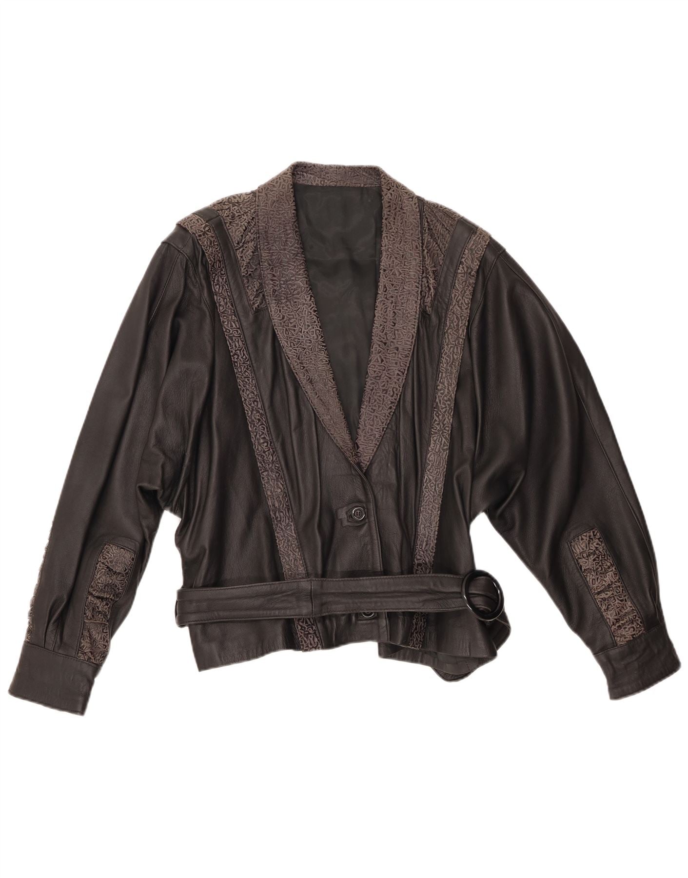 VINTAGE Womens Leather Jacket IT 48 XL Black Geometric Leather