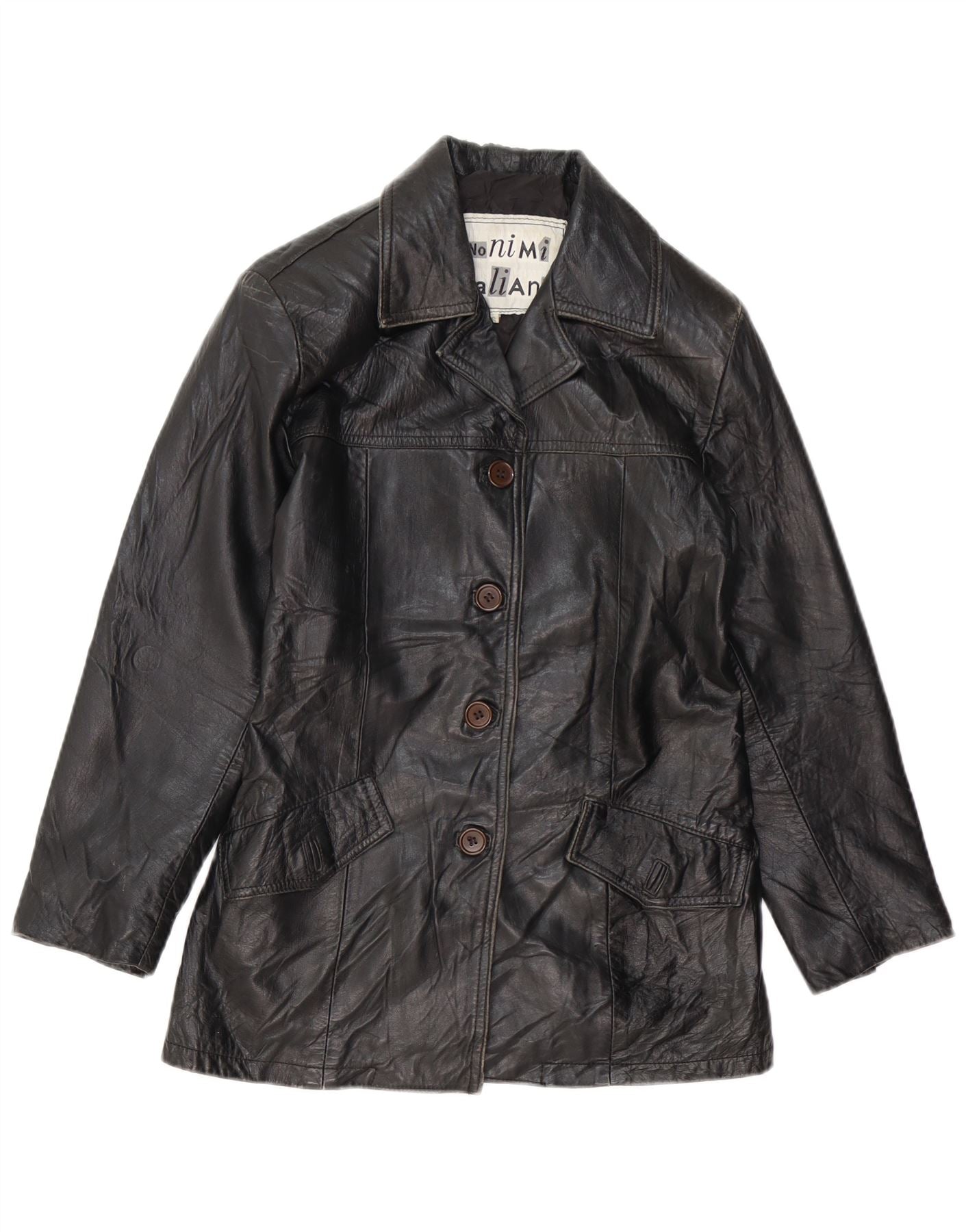 VINTAGE Womens Leather Jacket UK 10 Small Black Leather