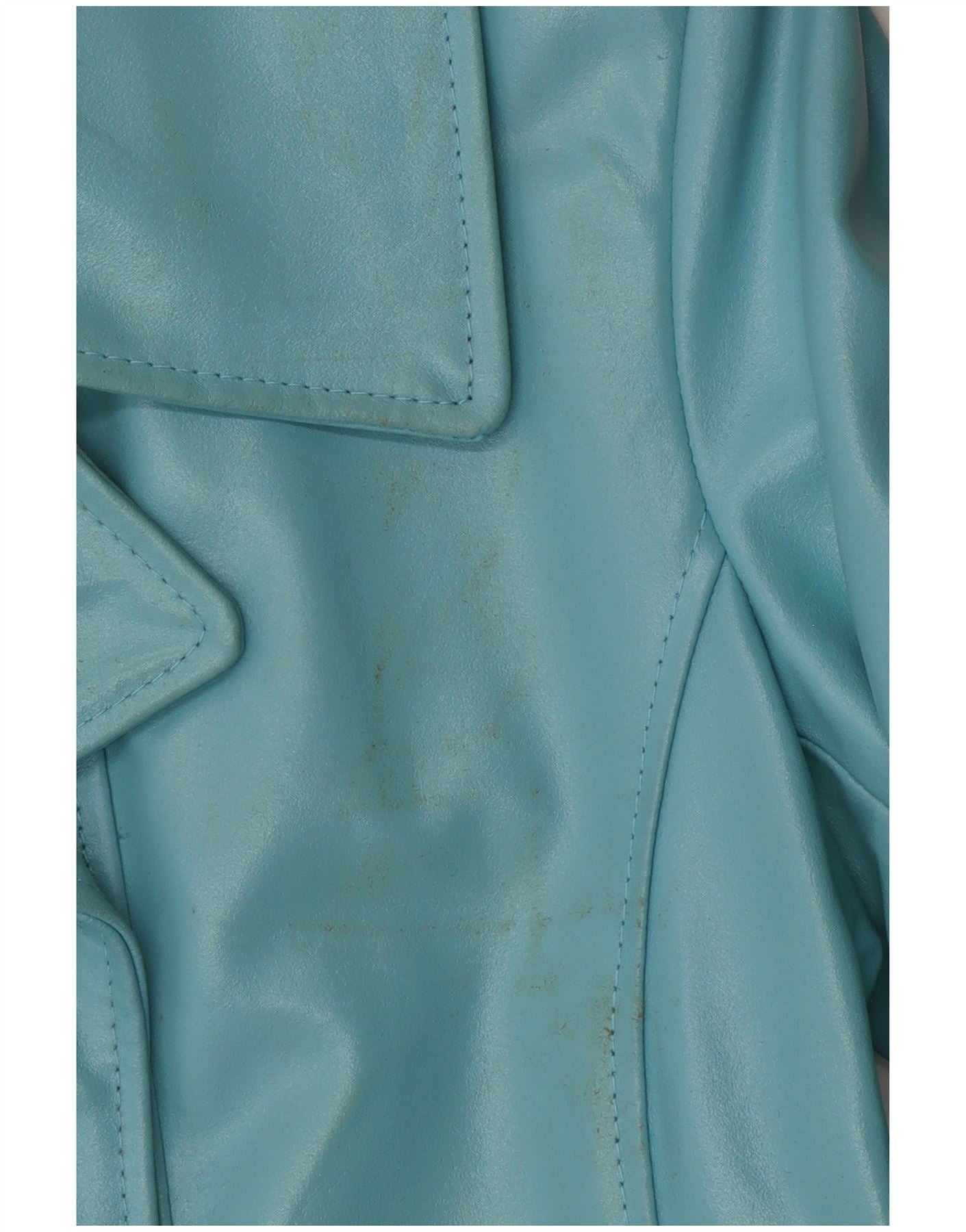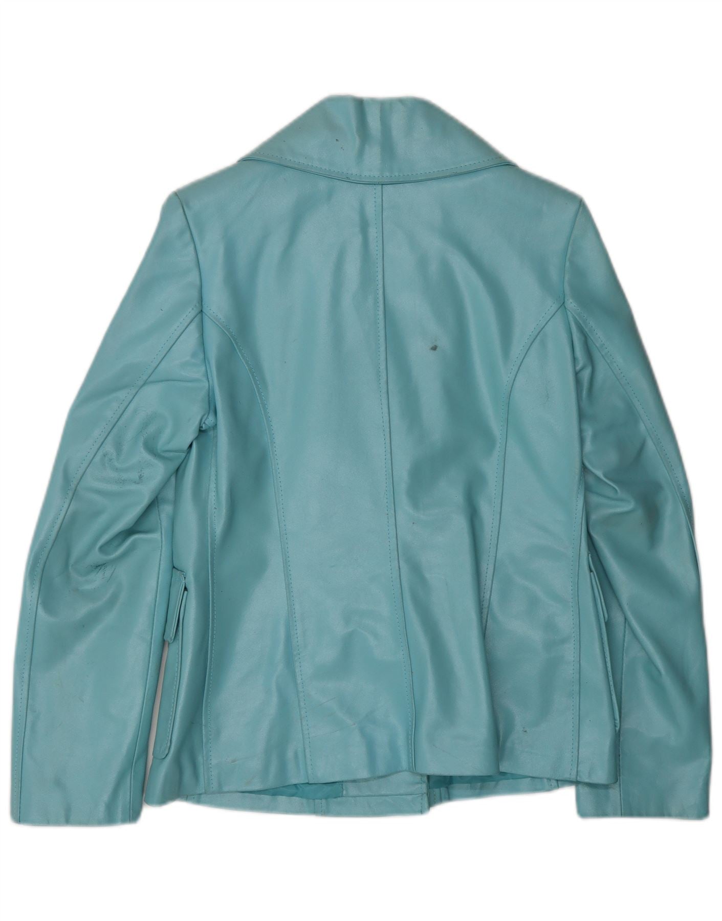 VINTAGE Womens Leather Jacket UK 10 Small Blue Leather